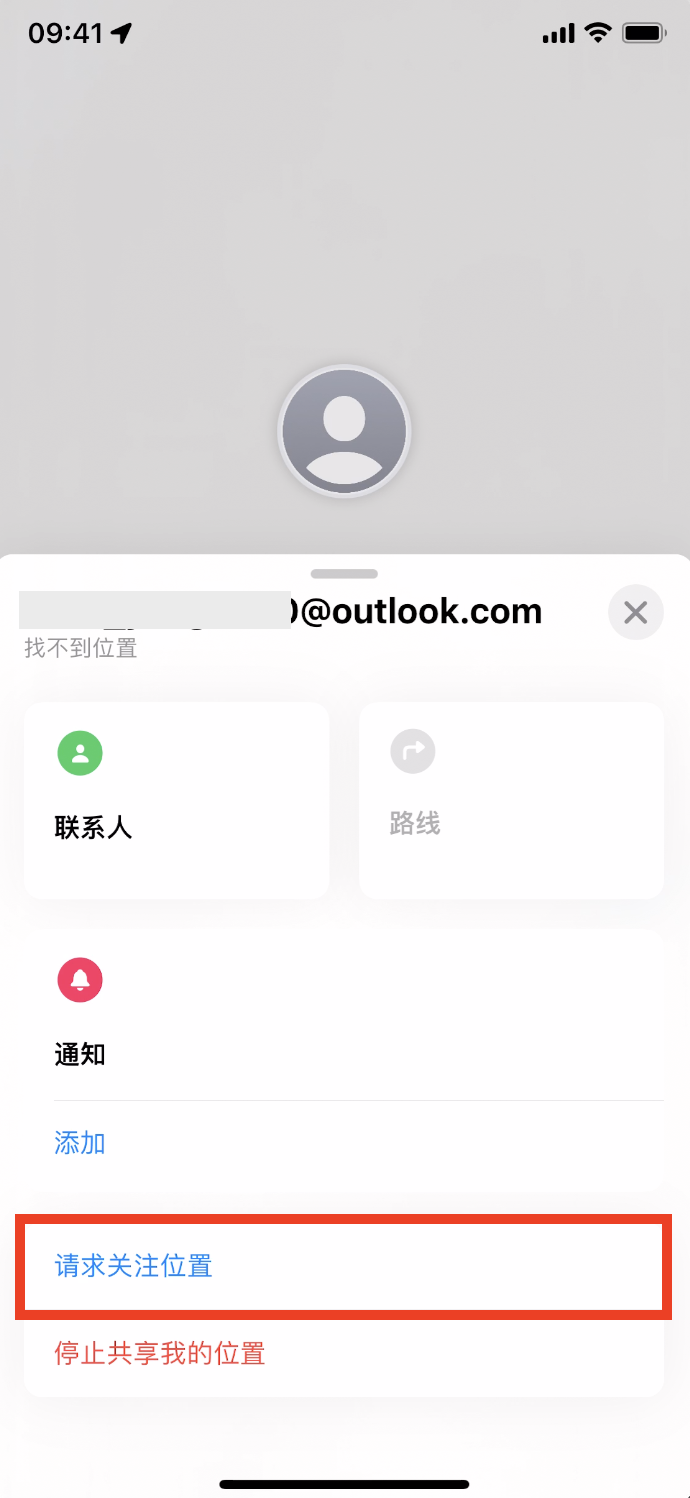 2.对方关闭了你查看其位置的权限,你需要重新向其请求关注位置。前往“查找”>“联系人”>轻点联系人的姓名或邮箱地址>轻点“请求关注位置”来向其发送请求。