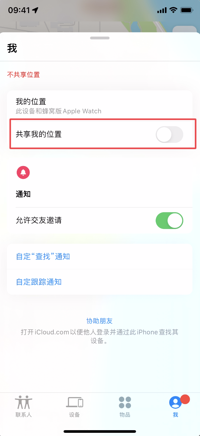 1.对方未在查找中开启“共享我的位置”,即使你拥有关注对方位置的的权限,也无法获取到对方的位置信息。你可以联系对方前往“查找”>“我”>轻点“共享我的位置”后方的开关按钮来启用此功能。