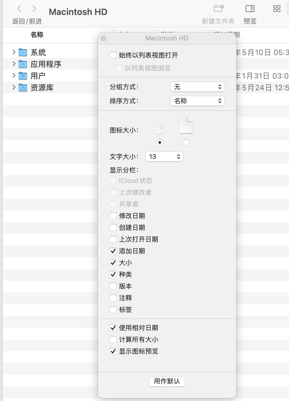 按住option调整好访达窗口大小后,并且用作默认。 但是重启后或者过一段时间就会失效,变成很小的窗口用起来很麻烦。 设置默认很多次了都没有用 求解决办法