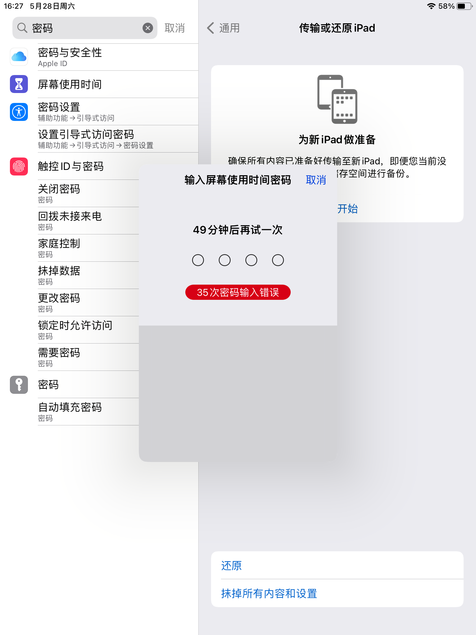 问题被标记为 排名最靠前的回复 以下用户的用户个人资料: SparkWu SparkWu 用户级别: 级别 7 28,336 积分 2022年5月28日 上午2:28 回应 梓泰 如果您忘记了“屏幕使用时间”的密码,且无法重设密码,请抹掉设备并将它设置为新设备,以移除密码并选取一个新密码。从备份恢复设备不会移除密码。 回复 链接
