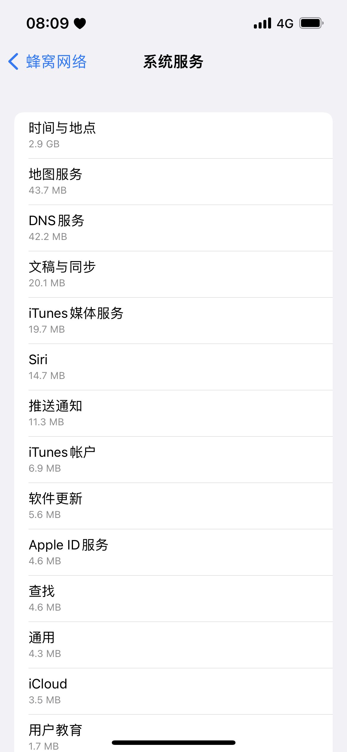 然后我在设置里面查数据使用情况,流量用的最多的是“系统服务”里的“时间与地点”,用了三个g,不知道是什么情况,