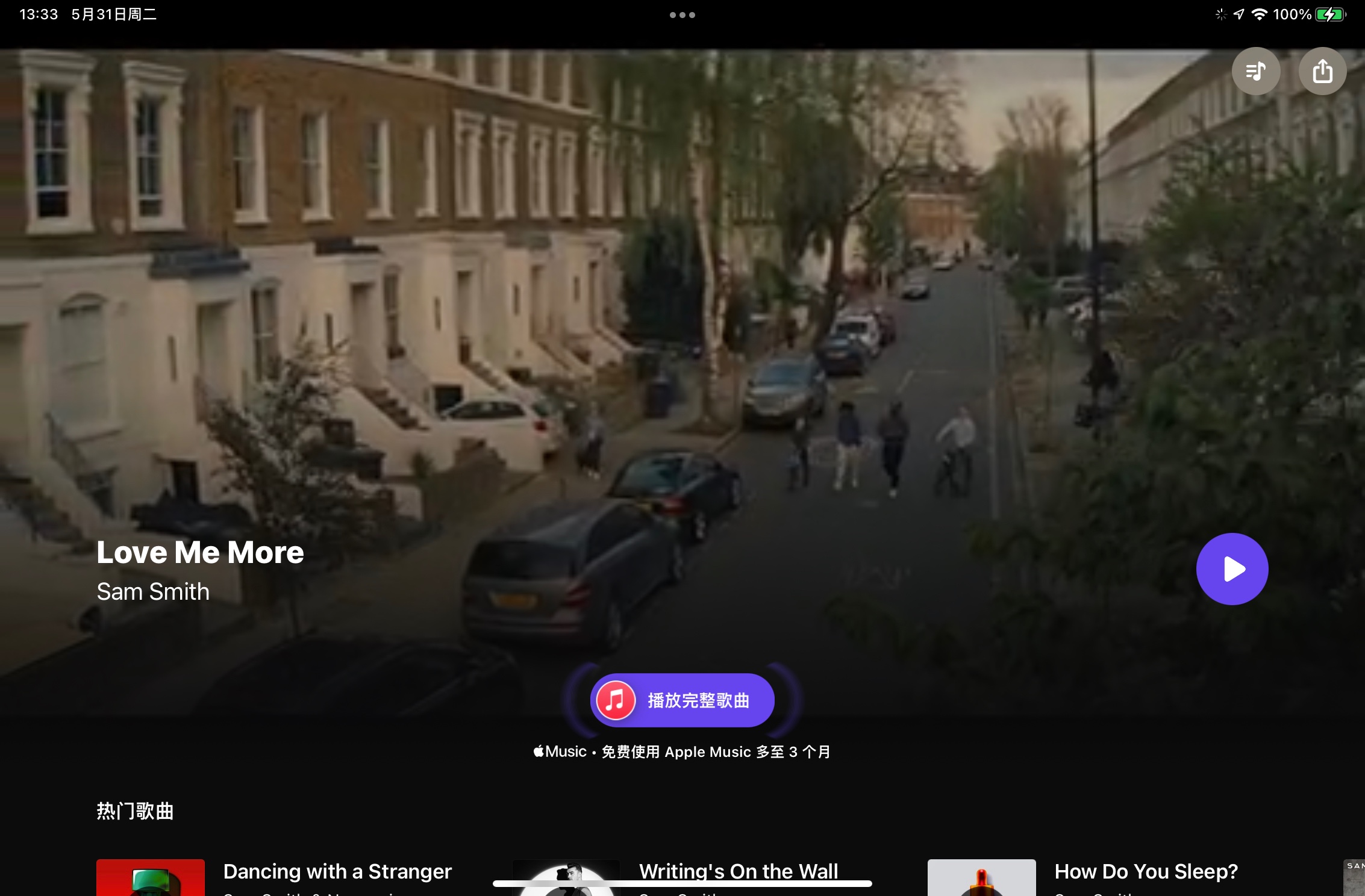 因为控制中心里的Shazam是“轻App”,你可以把 轻App 理解成类似「小程序」的存在,不过只是提供某一个App的部分功能,Shazam的轻App提供的功能仅为 识别歌曲、分享歌曲、同步查看歌词,以及“在Apple Music中播放完整歌曲”(如下)