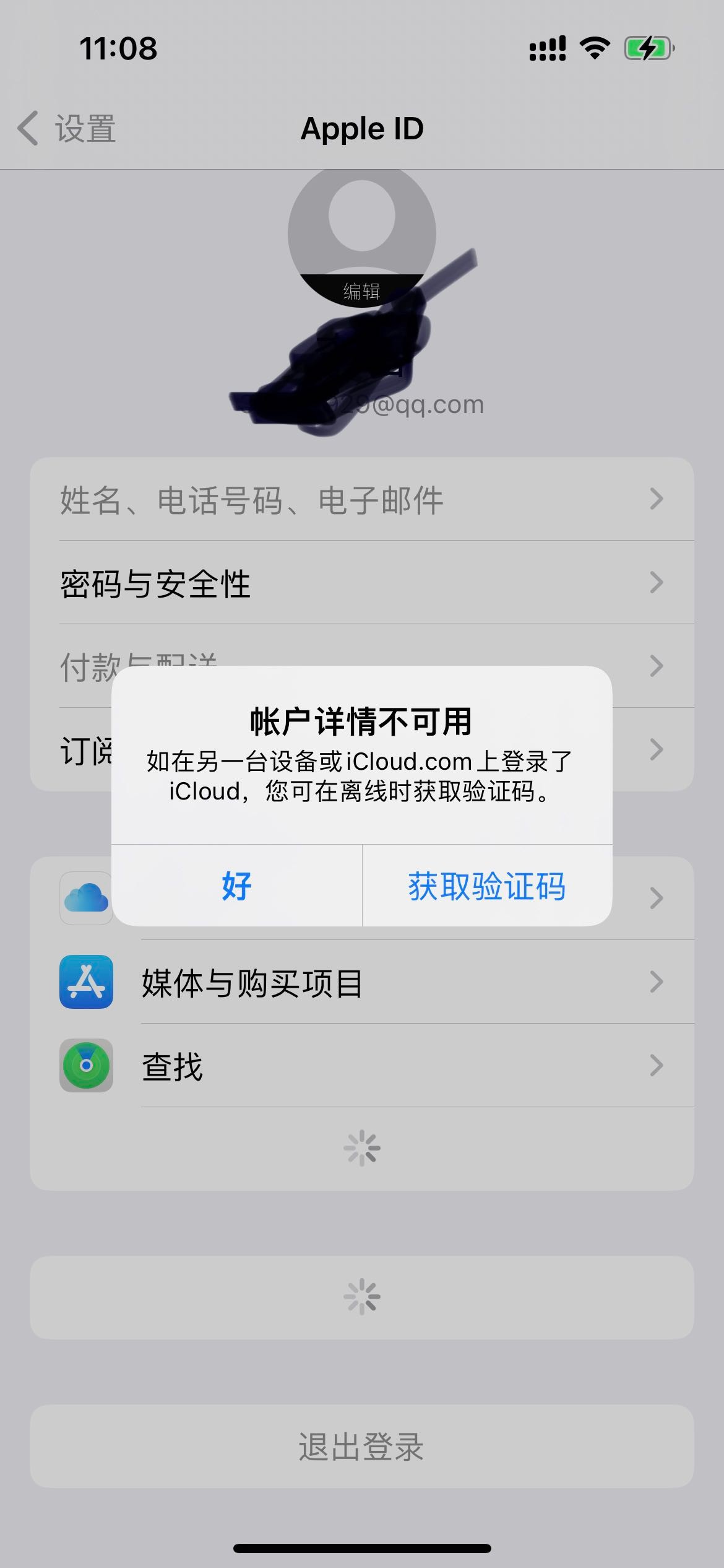 2 点击Apple ID详情里面, 很多都是暗色,也无法退出登陆。点击“密码和安全性”弹出,账户详情不可用,我收电脑登录icloud,显示密码登录错误;用mini4,也无法“获取到验证码”。(图3,图4)