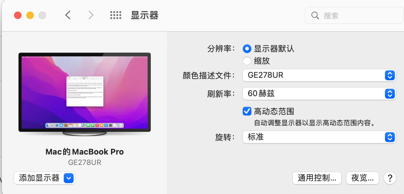 但此时显示设置中只有Studio和iPad Pro的屏幕,MacBook Pro还是无法正常连接。