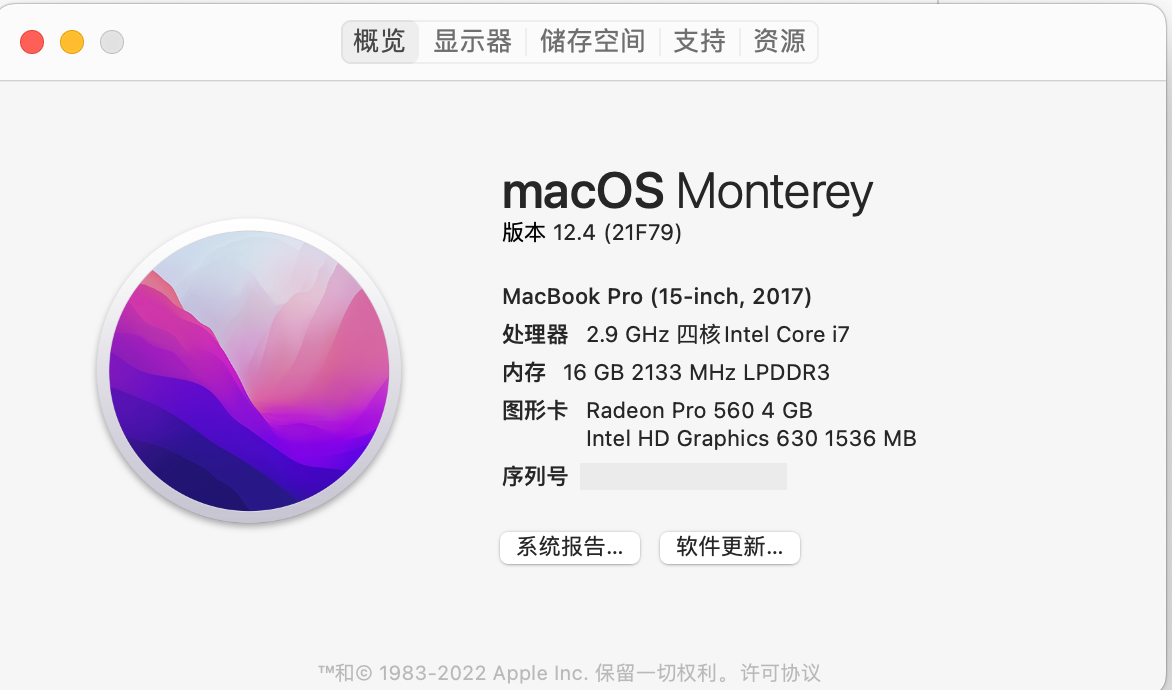 7. 将MacBook Pro的系统升级到最新版的MacOS Monterey 12.4
