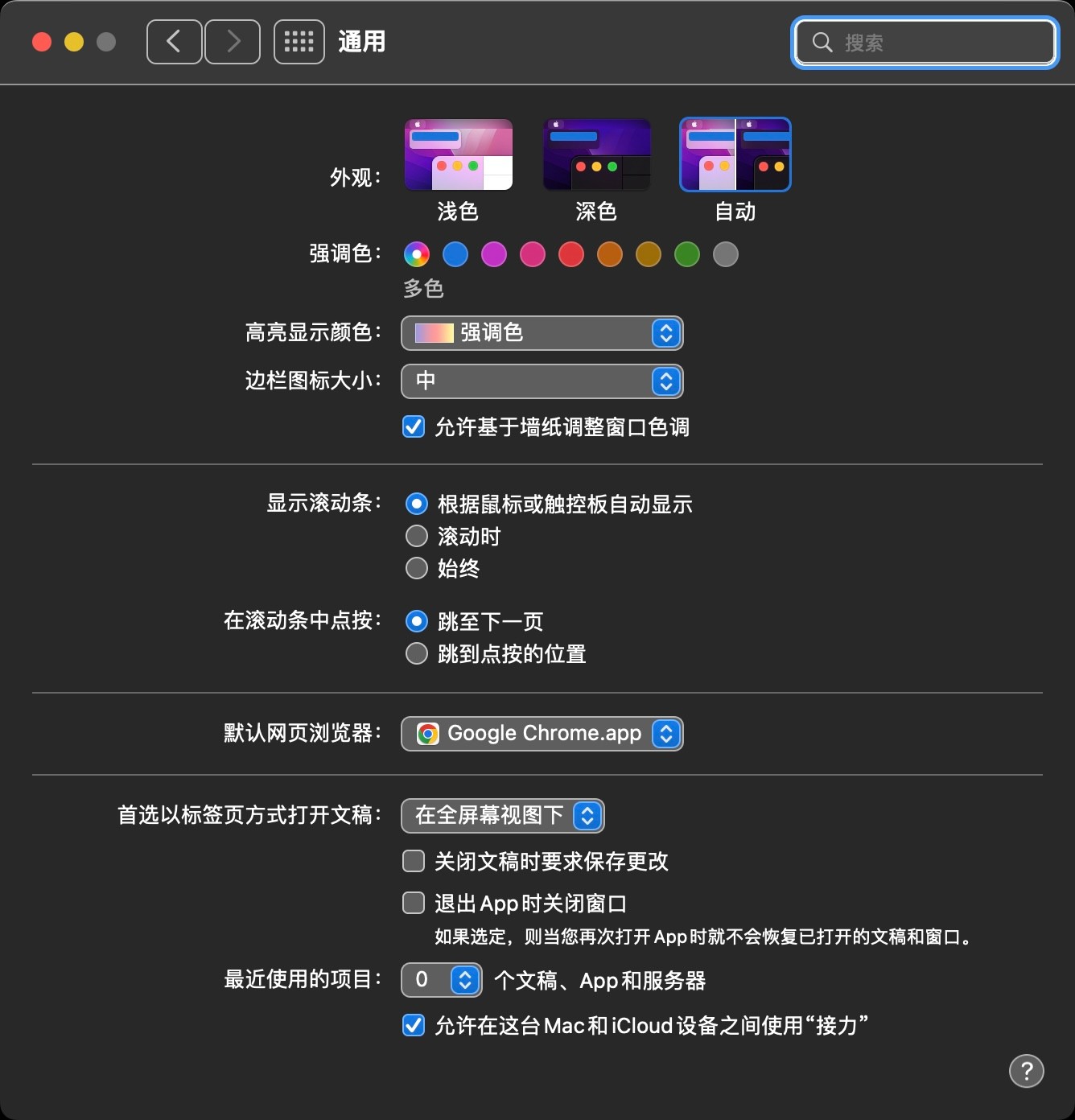 检查关键的几点:每一个设备都是打开 Wi-Fi和蓝牙,登录相同的 AppleID而且必须打开双重验证,Mac 和 iPad 都准许使用“接力”(Mac 上参考下图)。不要共享Mac互联网网络或者iPad蜂窝网络,不要应用 VPN等。