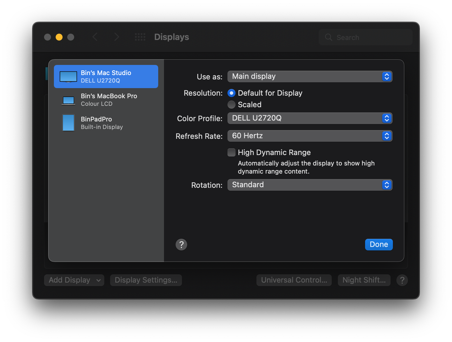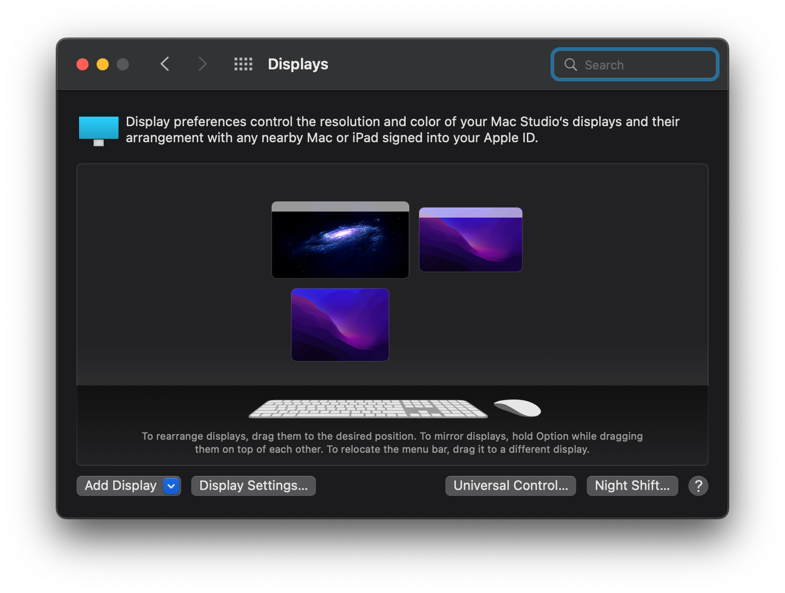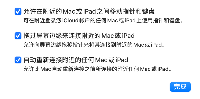 到这里问题就解决了,三台设备可以正常通过Universal Control连接,并进行设置。但是原先的屏幕位置等设置是被重置的。