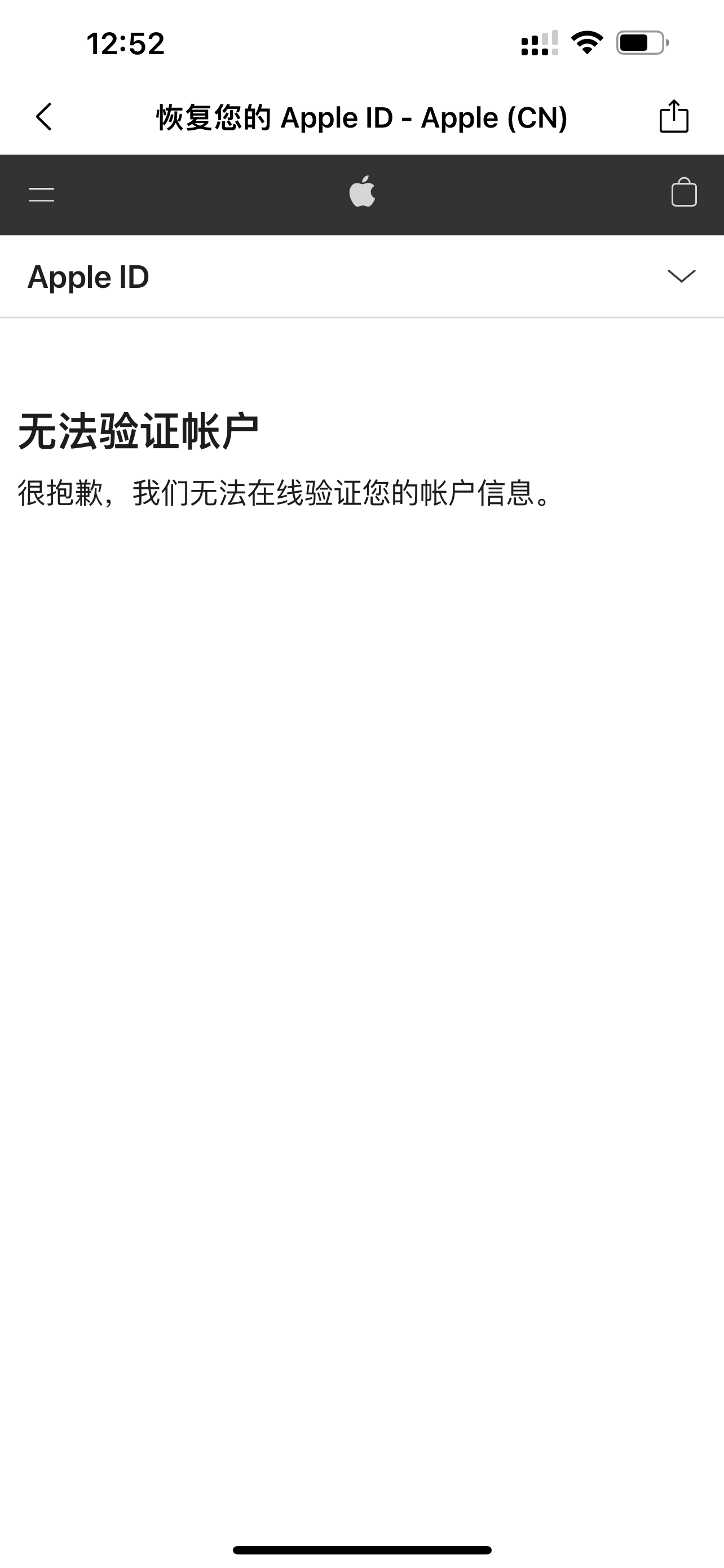 忘记苹果id后验证邮箱显示:无法在线验证邮箱