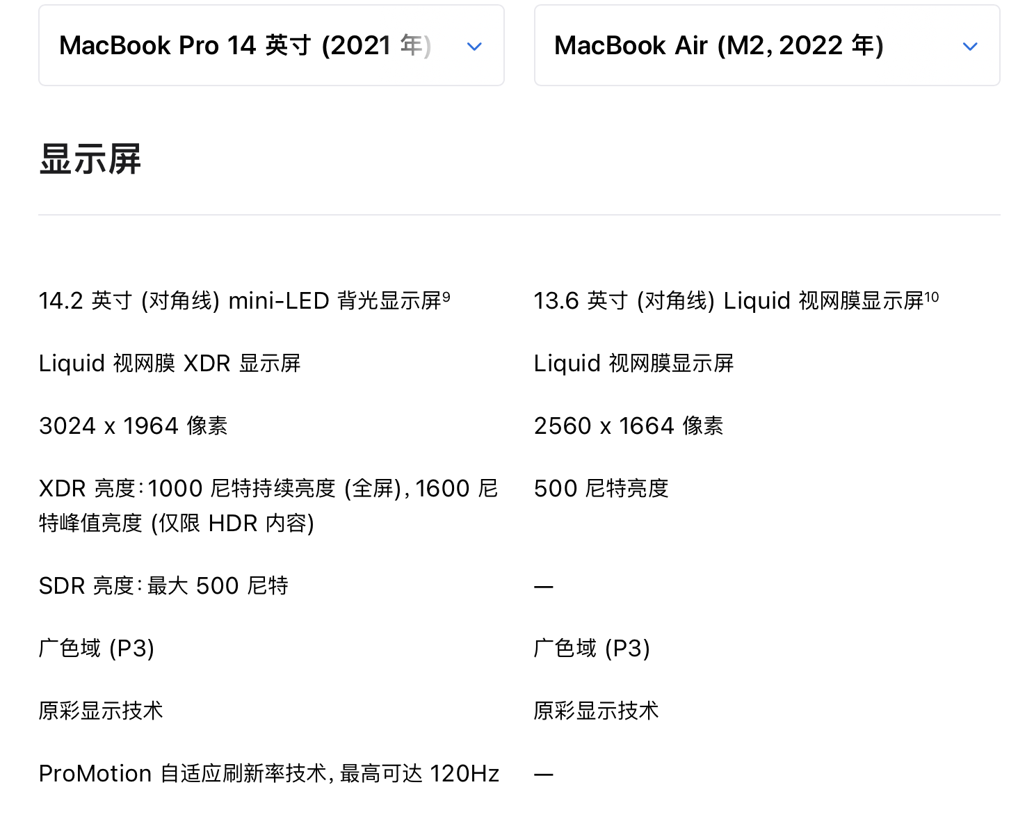 相较于 MBA 的 Liquid 视网膜显示屏,MBP 14/16 的Liquid 视网膜 XDR 显示屏具备以下优势: