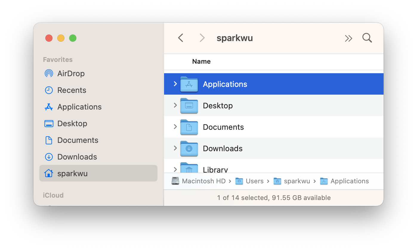 我的 Mac 用户名字叫 sparkwu,而你看到应该是你自己的 Mac 用户名。
