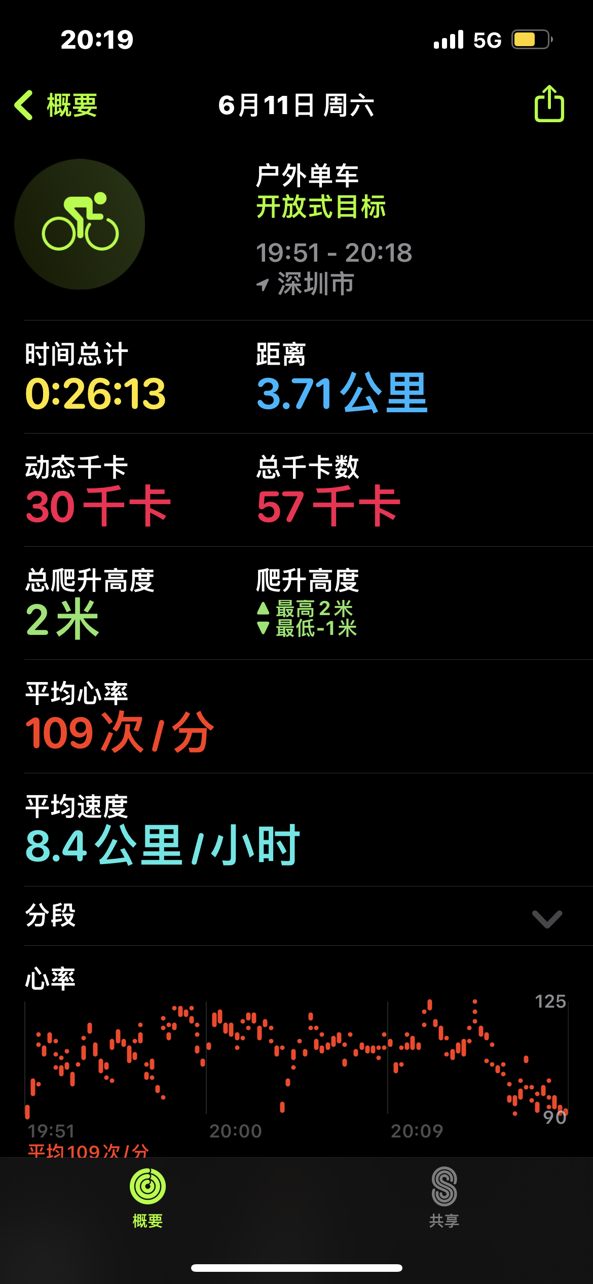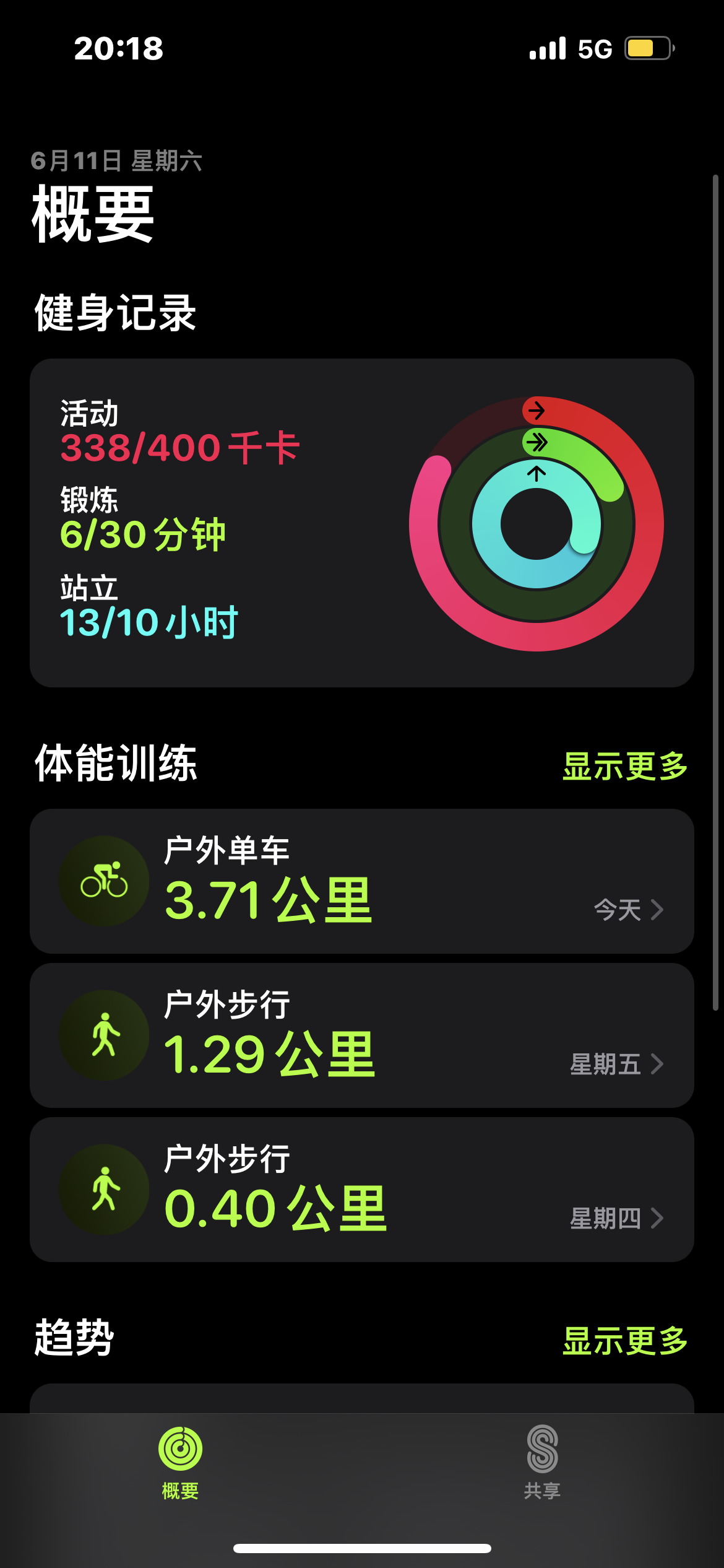 从下图可以看到我六月十一号在体能训练App进行锻炼,骑车26分钟,但是在健身App当中,我今天的锻炼还只有6分钟,说明我骑车的这26分钟没有被记录在健身App里面,这种情况每周都会出现两三次。