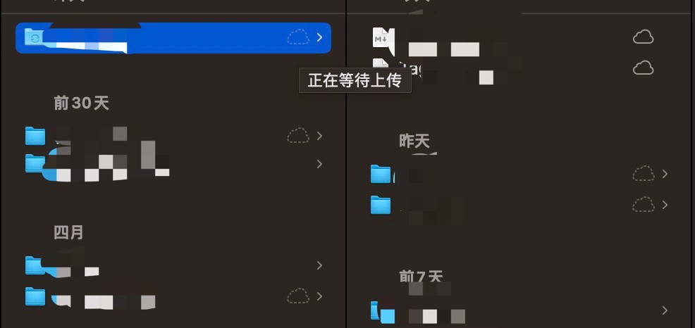 如图,插着电源且连着Wi-Fi,但今天新增的文件始终显示「正在等待上传」。