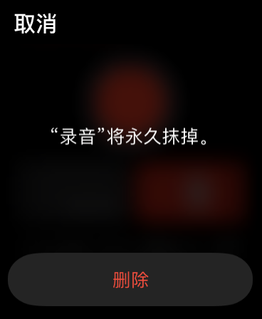 但是如果你是在 Apple Watch 上进行的删除操作,那么无论它是否已经被同步至其他设备,这条录音都会被立即抹除且无法恢复。使用 Apple Watch 删除的录音即使已同步至其他设备上,删除后也不会被移至“最近删除”文件夹中,而是被直接删除。这也是为什么你在 Apple Watch 上对录音进行删除操作时,系统会提示你“录音将永久抹掉”。