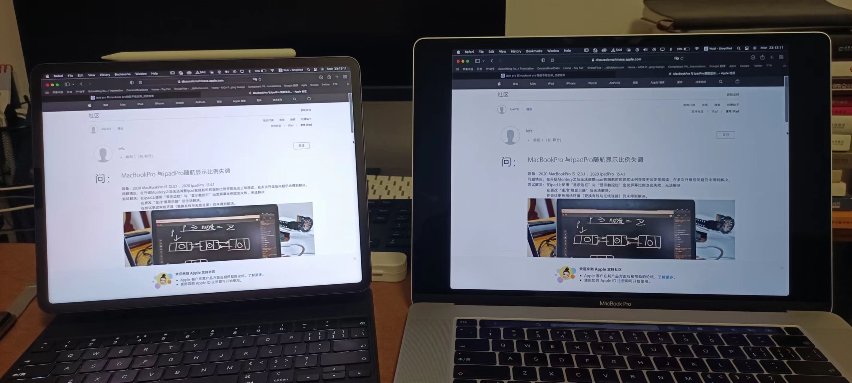 M1版iPad Pro和Mac book Pro 使用随航功能不能全屏显示