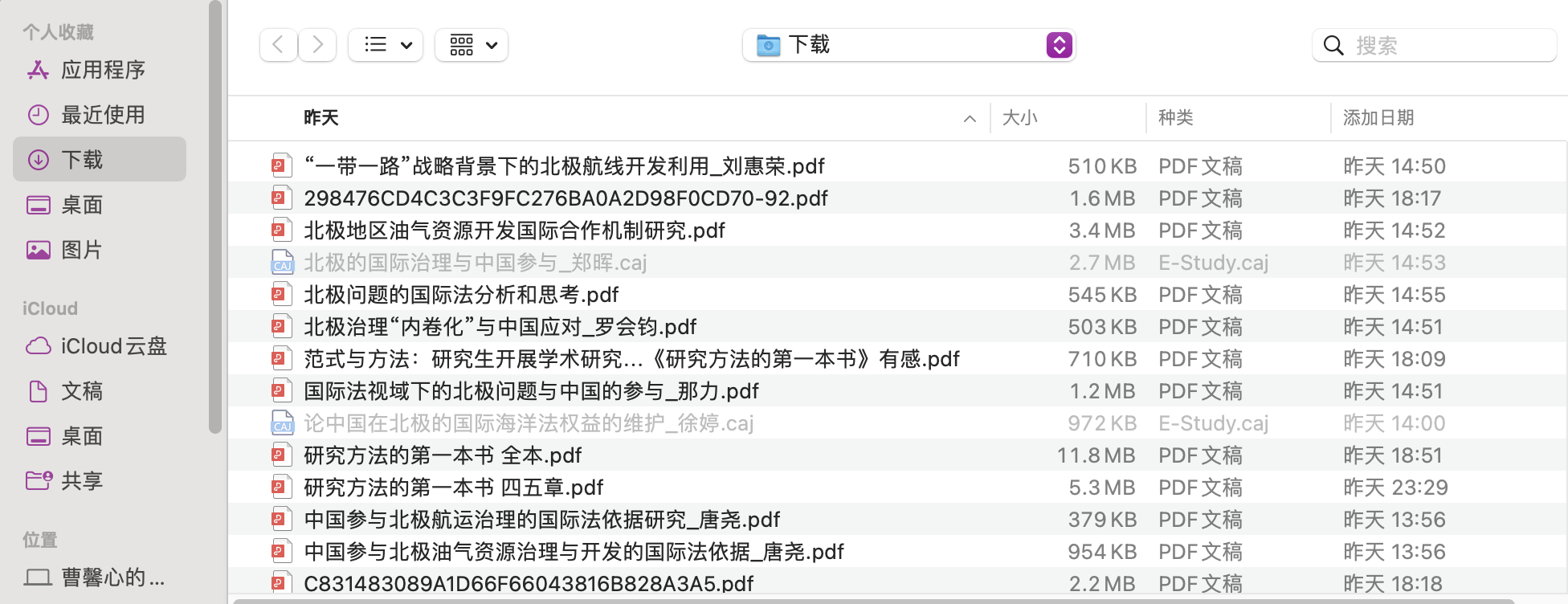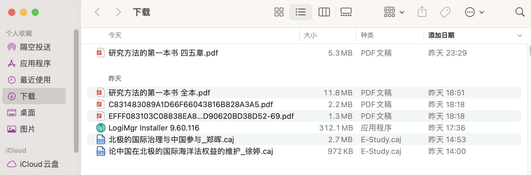 从访达打开“下载文件夹”和从浏览器-文件-打开文件中的“下载文件夹”内容不同