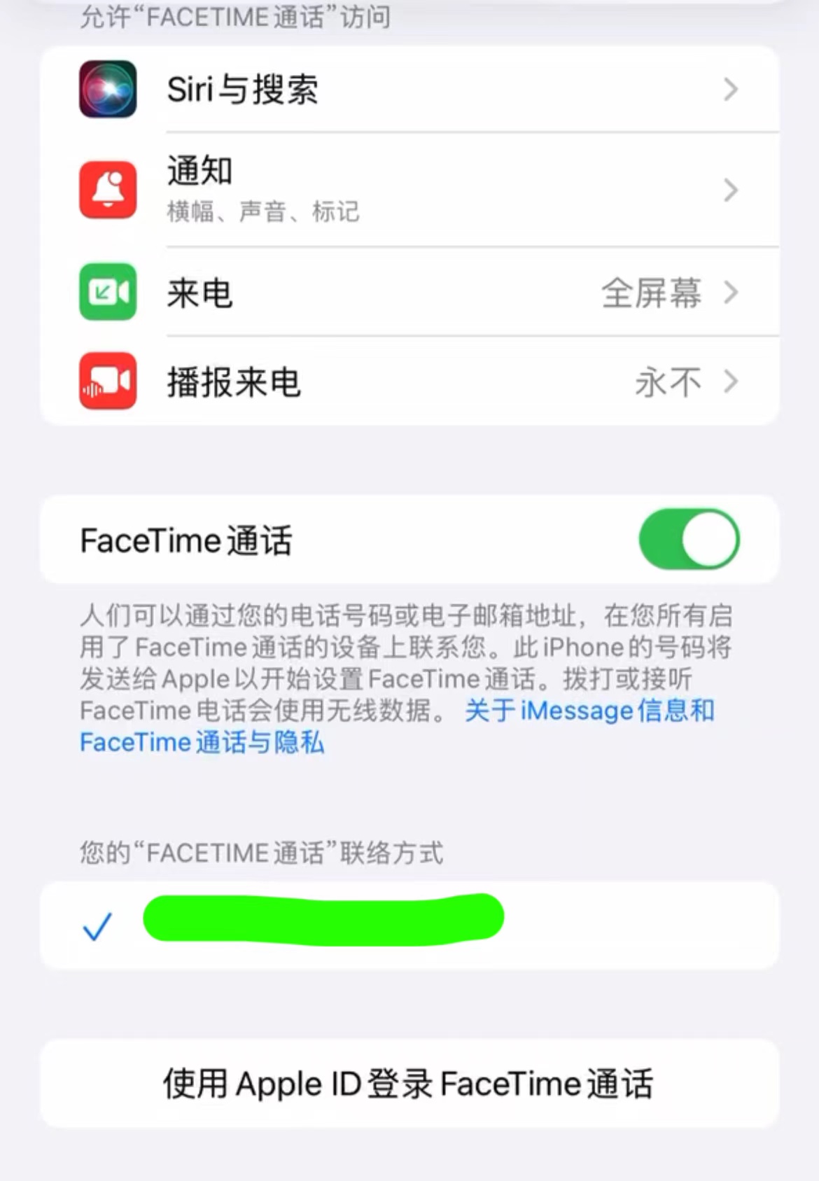 注意事项:未添加电话号码时,无法在FaceTime设置中使用Apple ID 登录FaceTime通话。