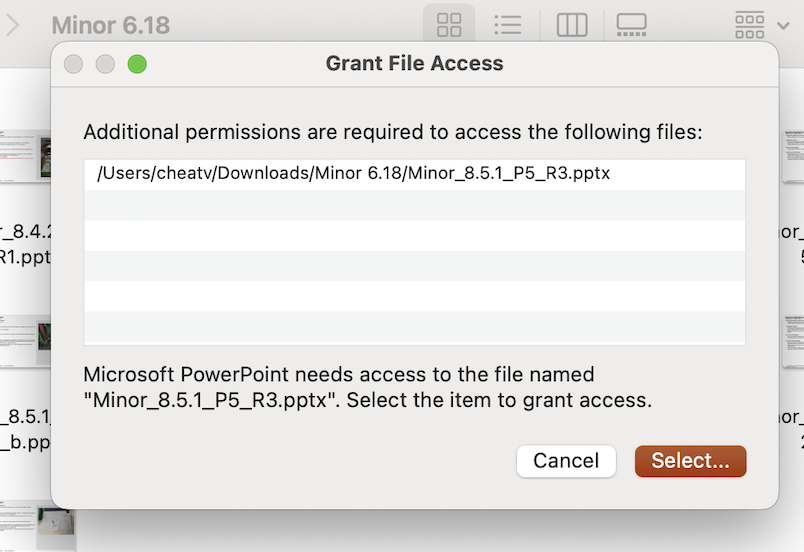 在新开的终端窗口中,复制粘贴下面的一行命令,再输入一个空格,然后把那个 PPT 文件拖放到这个终端窗口上,回车运行。它会当前用户信息和显示文件的权限,然后把执行结果贴上来: