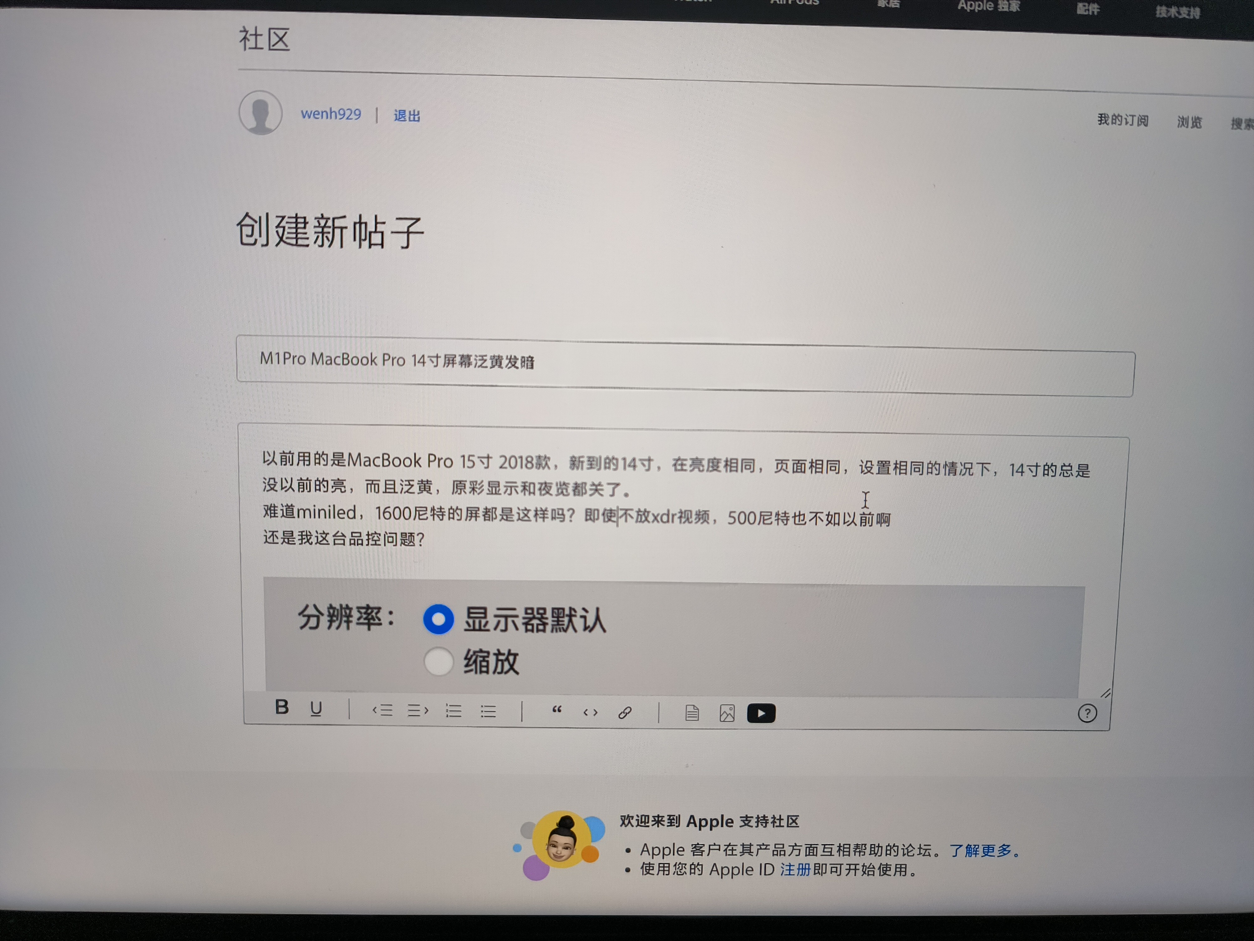 以前用的是MacBook Pro 15寸 2018款,新到的14寸,在亮度相同,页面相同,设置相同的情况下,14寸的总是没以前的亮,而且泛黄,尤其白色页面更明显,原彩显示和夜览都关了。