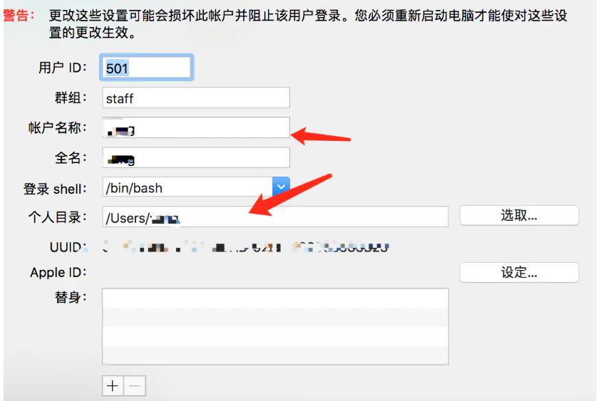Mac修改管理员高级选项之后,文件和配置都没有了