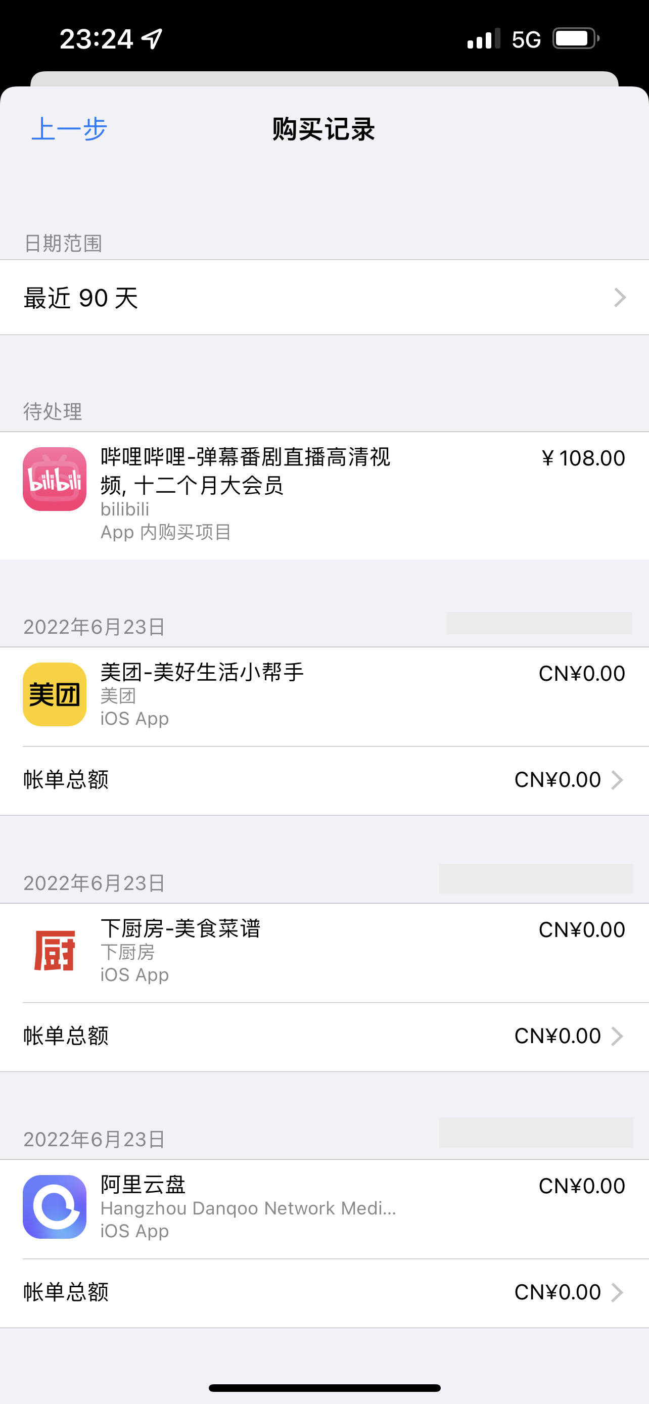 5.如果你的这个的APP没有退款选项,那么后边一定是显示的蓝色框,写着“iTunesstore支持”