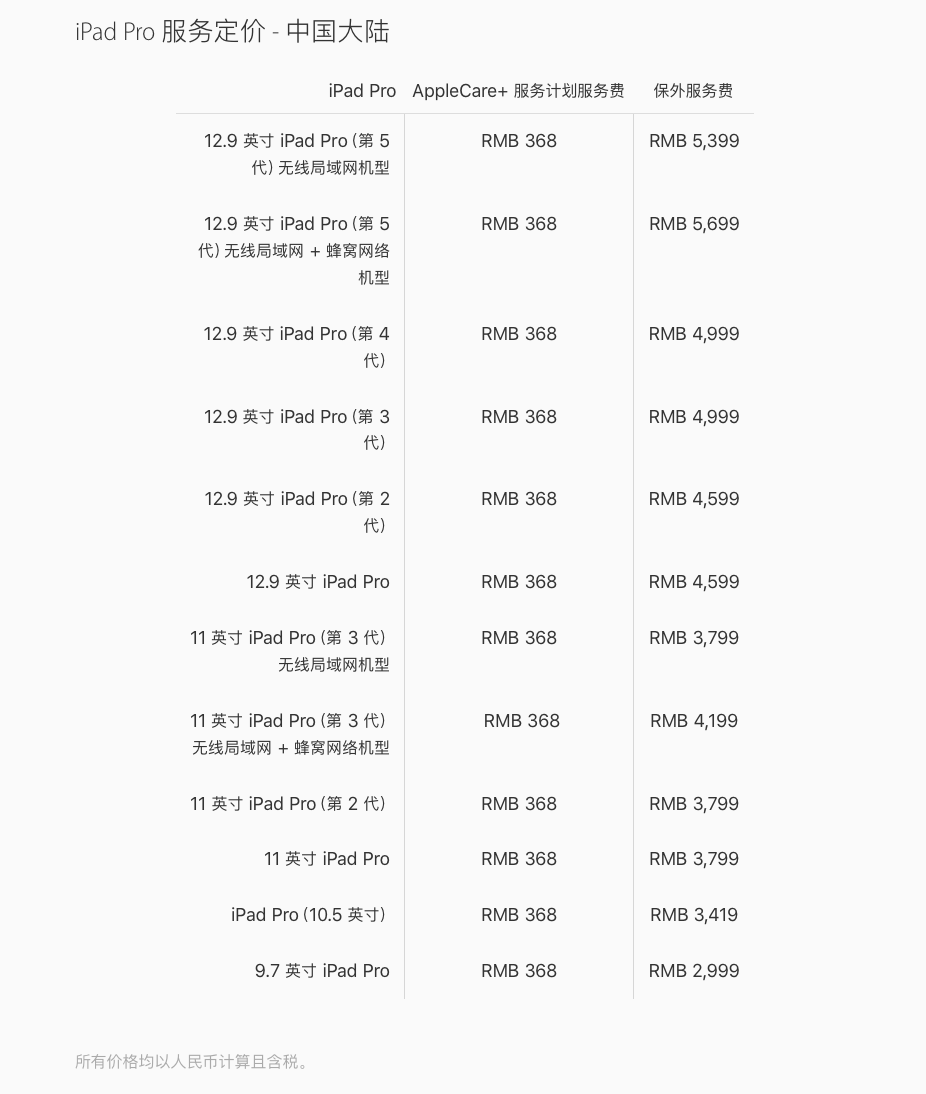 需要更换iPad Pro,如果设备有Apple Care+费用为RMB 368,如果设备没有AppleCare+费用可查询