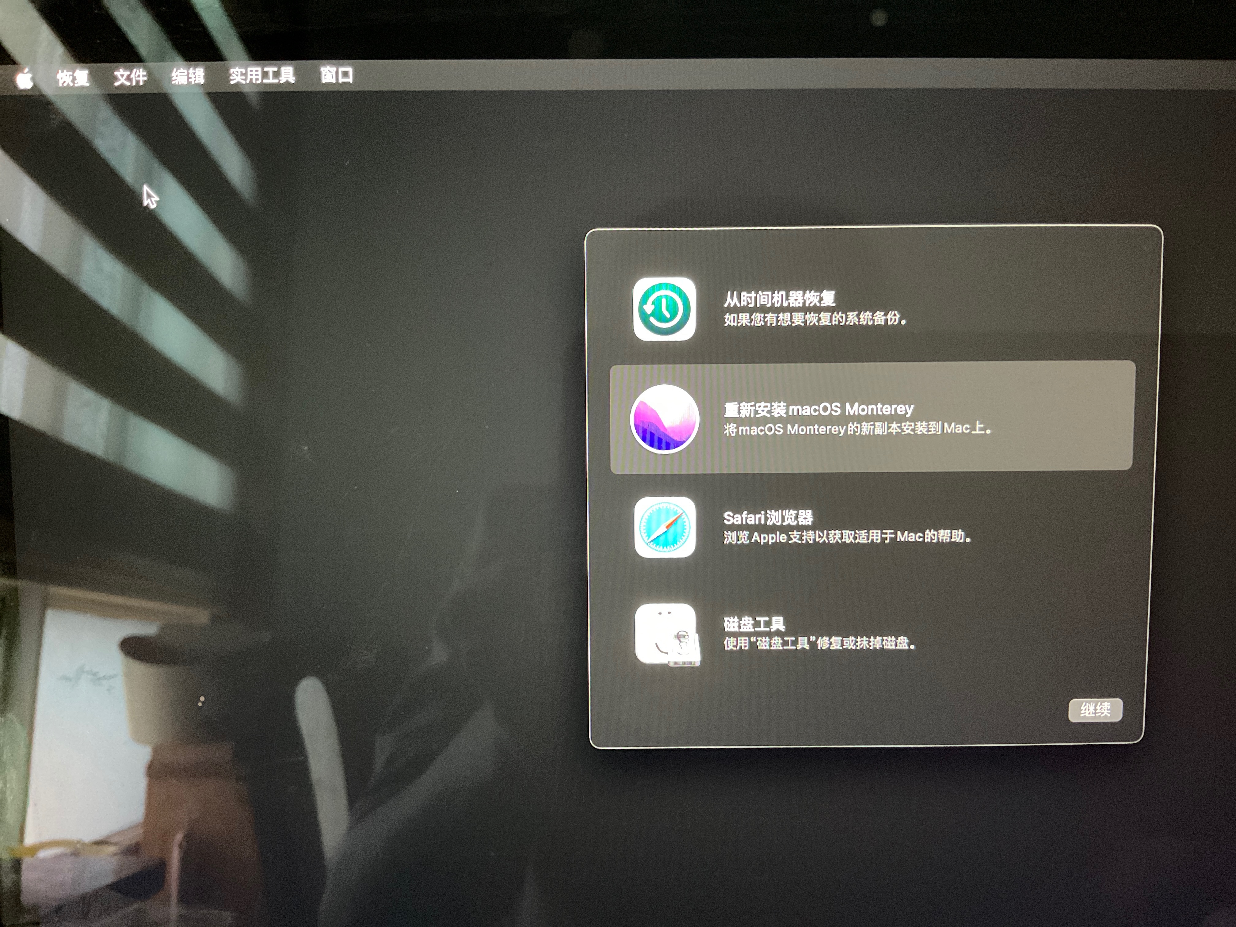 M1MacBook Air 13.0版本重装系统,删除原有的Macintosh HD磁盘新建同名Macintosh HD磁盘,现在已经下载完macOS 12.4,选择Macintosh HD盘作为启动磁盘时出现问题
