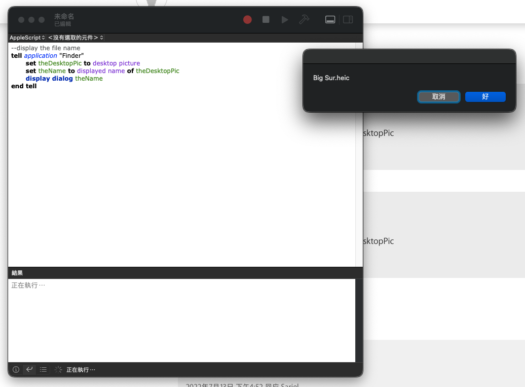 前面Sariel前辈写的AppleScript(tell application "Finder")我在iMac 10.15上运行成功了,但是新的MBP M1 Pro和MBA 2019上的新系统就是不行,报错 error "無法取得「displayed name of missing value」。" number -1728 from displayed name of missing value。