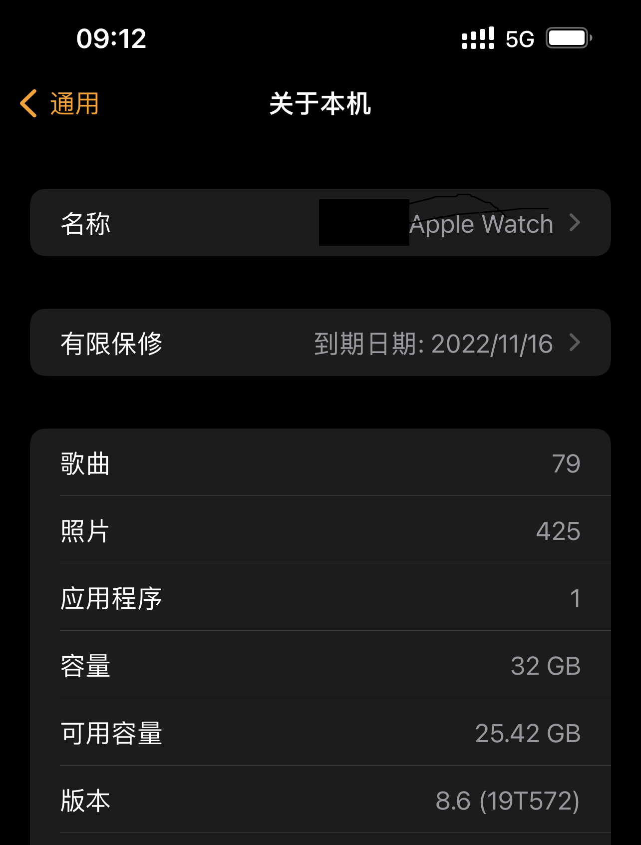 型号:Apple Watch Series 7 watch os:8.6(19T572)