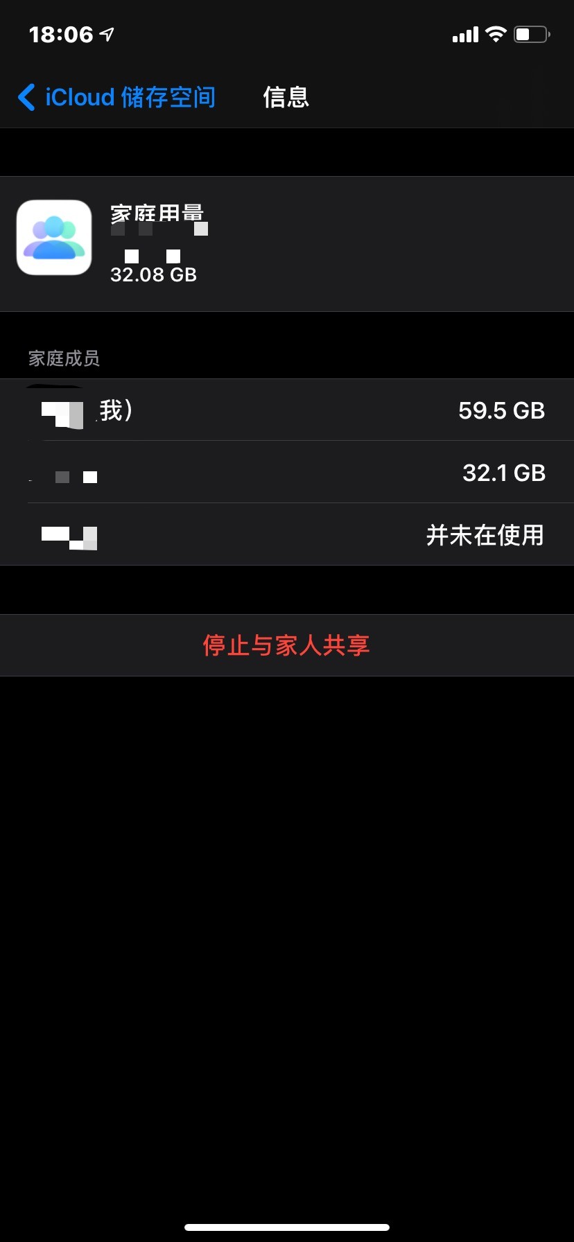 我已经购买了200G 的 iCloud 空间, 并设置让我的2位家庭成员使用我的 iCloud 家庭共享. 从下图可以看出: