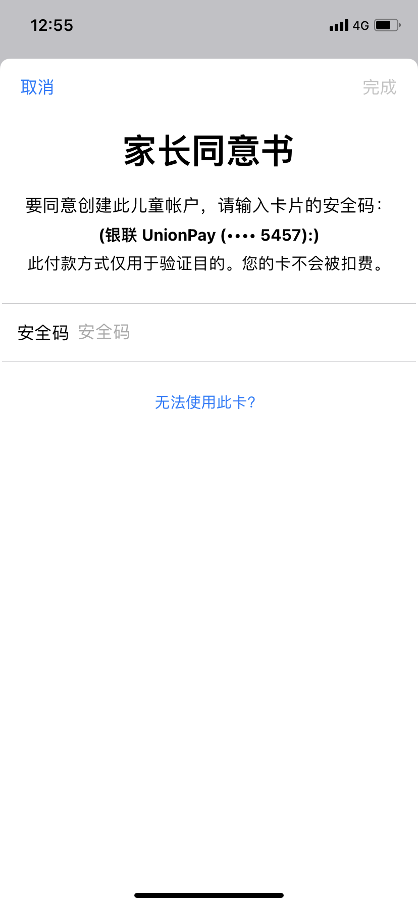 就是在家人共享里面创建儿童账户的时候,它提示必须需要信用卡,怎么才能不使用信用卡创建儿童账户?
