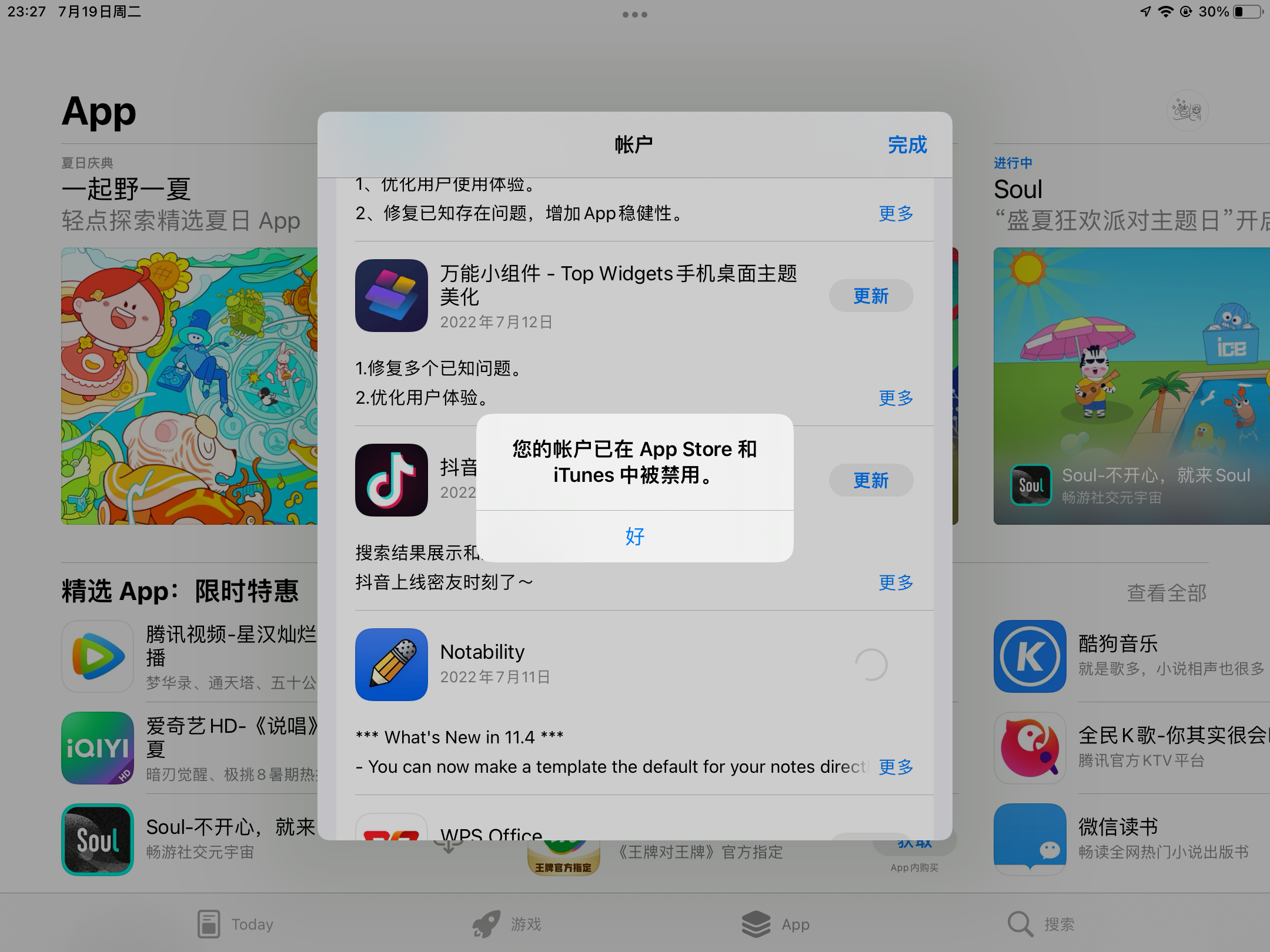 如果您的帐户已在 App Store 和 iTunes Store 中被停用