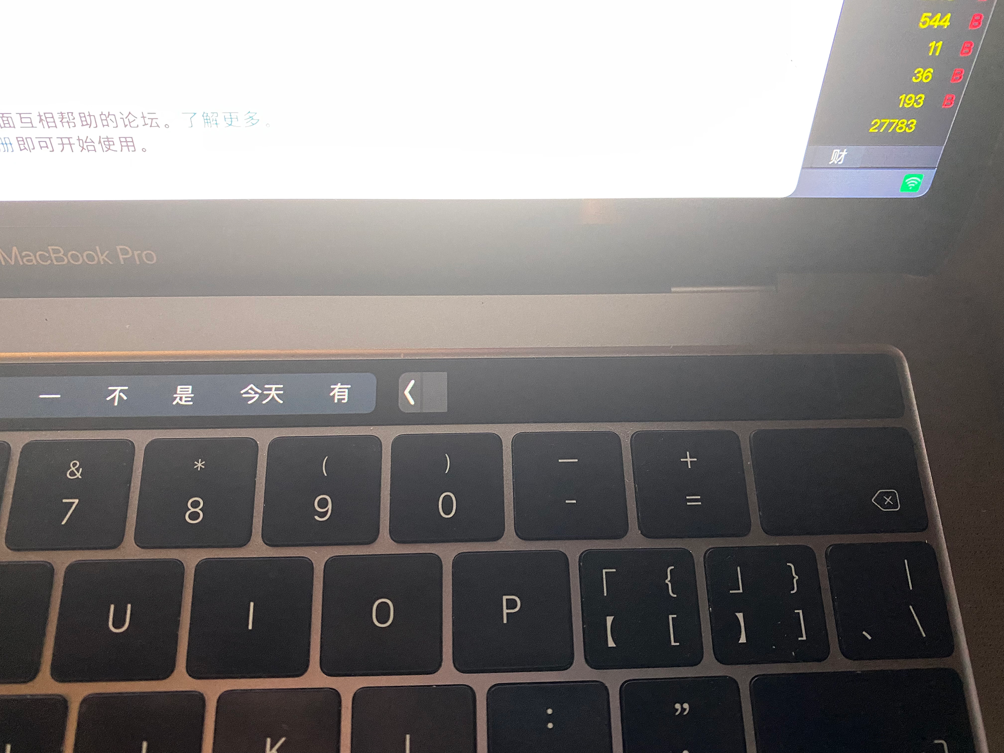 键盘上的touchbar 右侧有1/3区域已经不显示了,但是可以按。