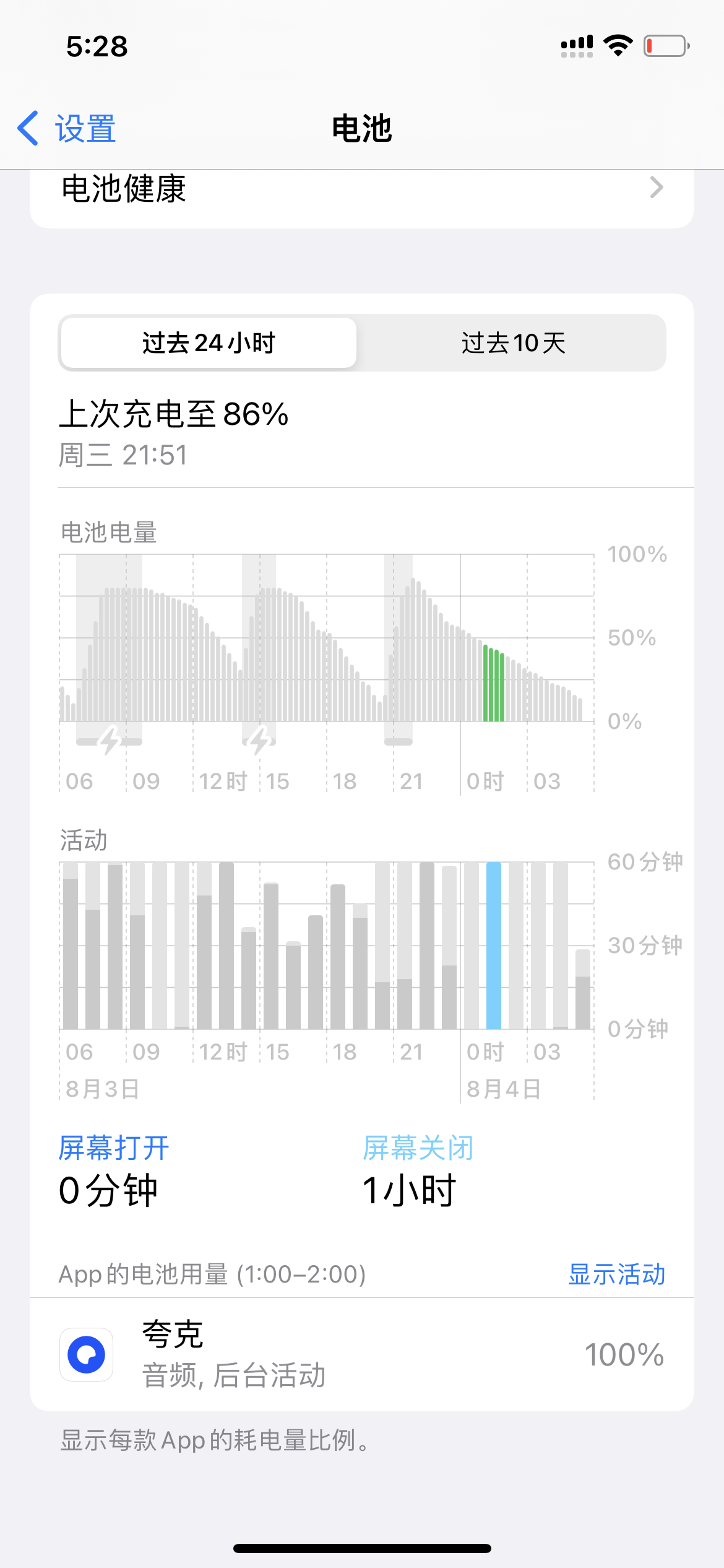 夸克此前是持续关闭APP后台刷新的,可是昨晚充完电到80%左右后,夸克一直在后台消耗电量,今早起来手机就只剩20%左右的电了