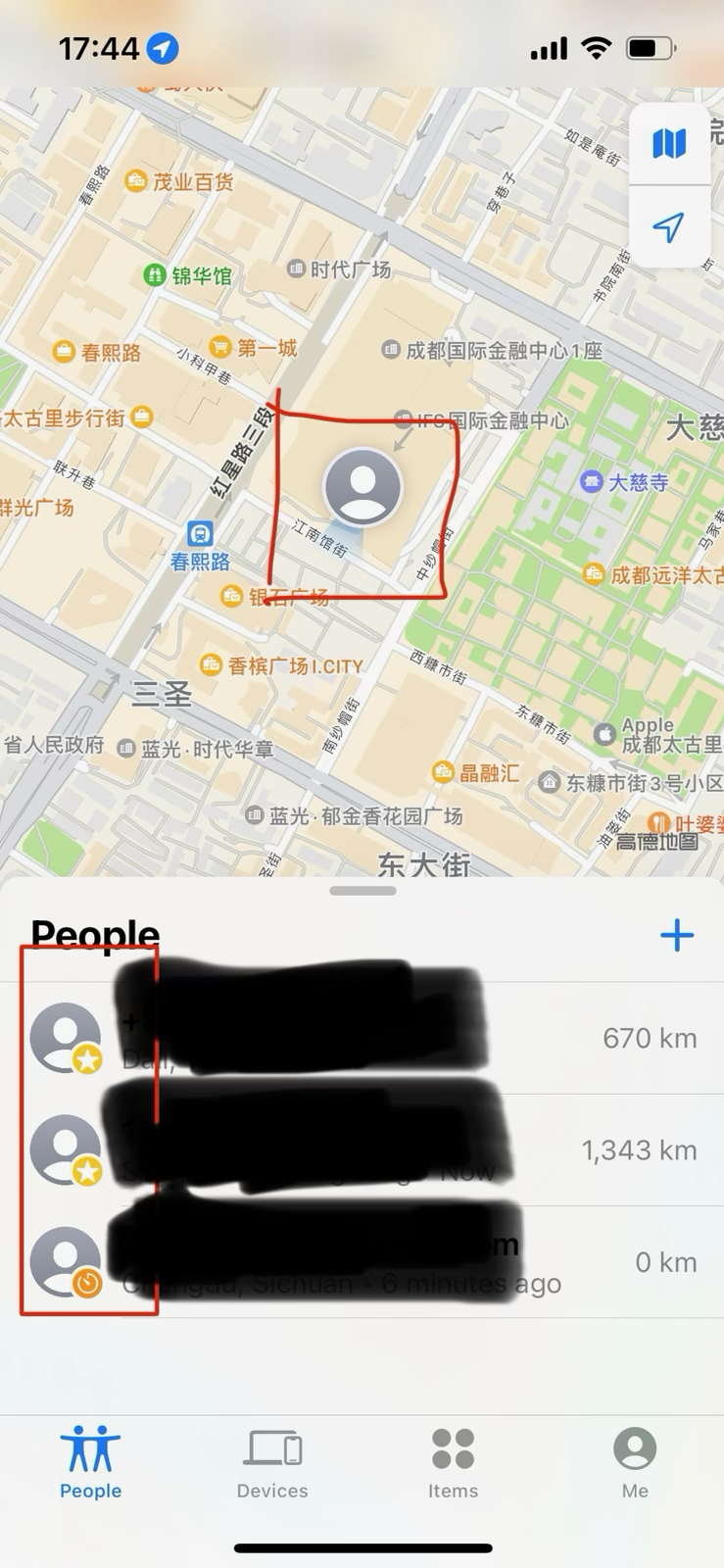 从find my中点击进入后,似乎是没有把查找位置的人添加进通讯录
