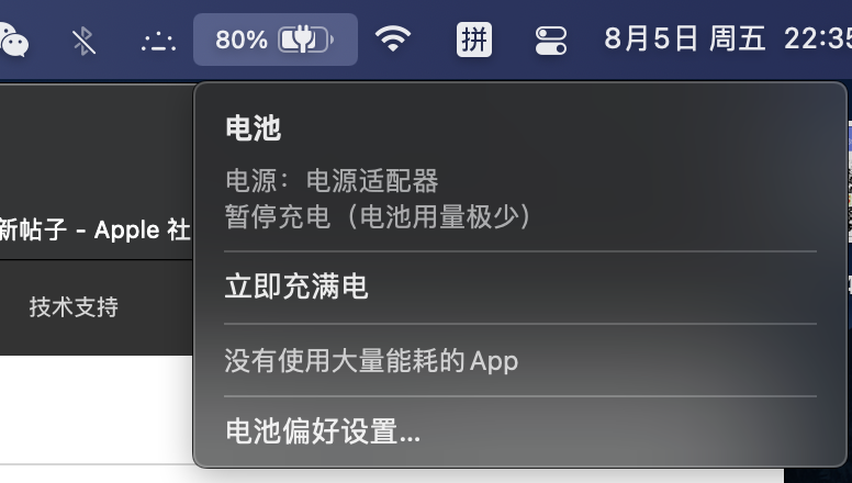我之前使用的MacBook air 2019款,就没有这种问题,插电使用时,电池容量适中保持在100%。
