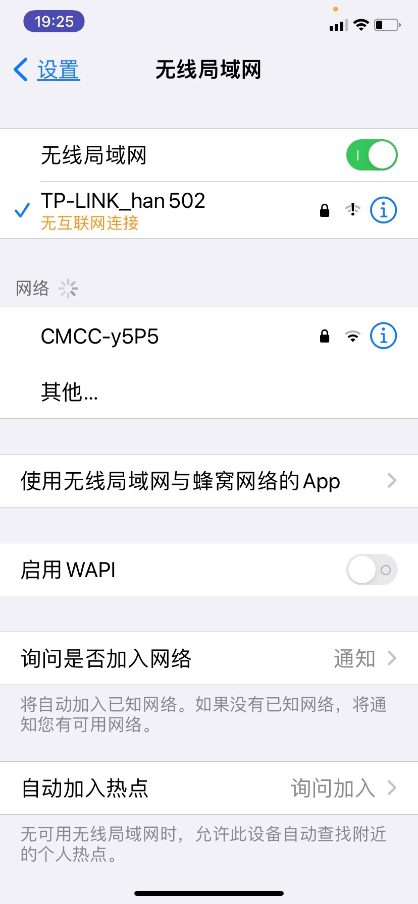苹果手机wifi感叹号无互联网连接可上网