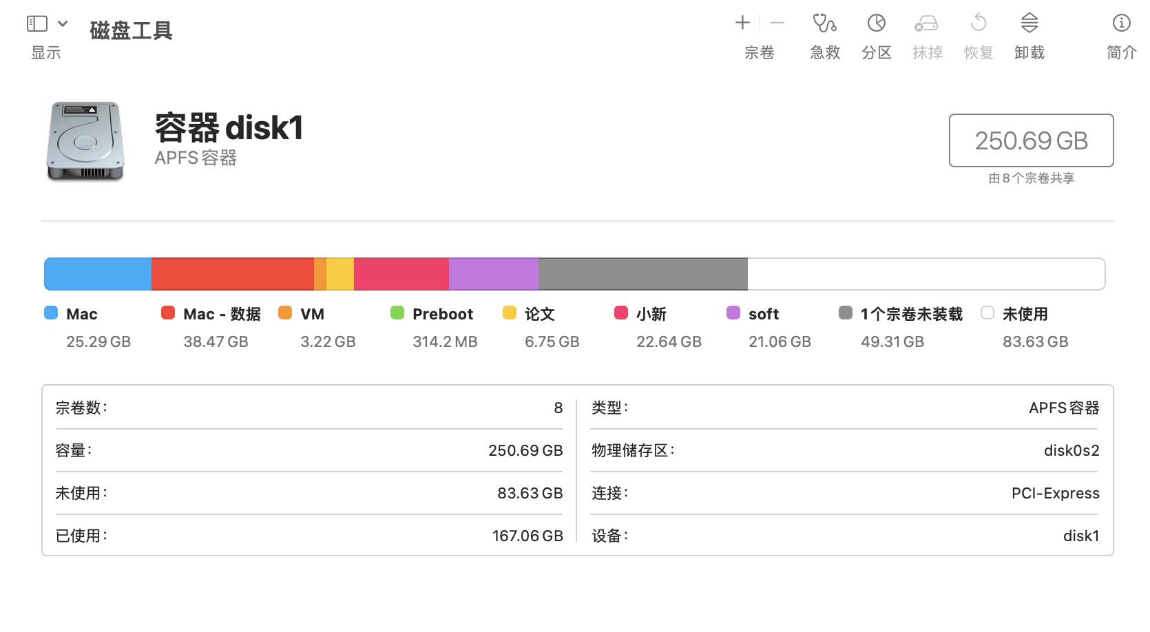 磁盘工具中看到一个宗卷未装载是正常现象吗?