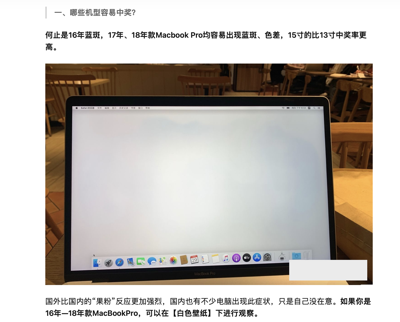 近期由于升级了Mac OS系统,突然发现屏幕出现蓝斑。在白色或者浅色背景下尤其明显。