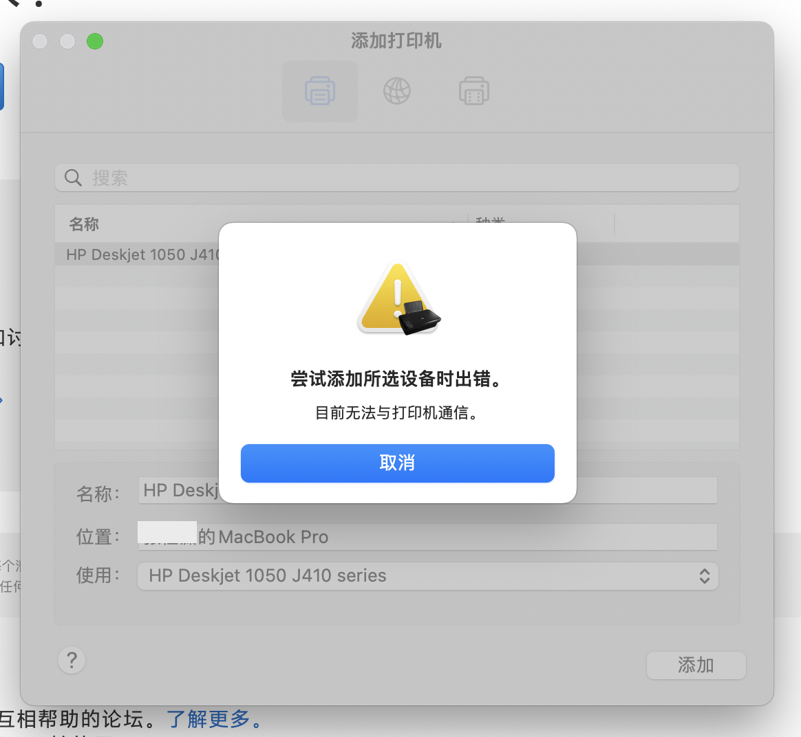 M2的MacBook Pro如何连接惠普HP Deskjet 1050 J410 series?