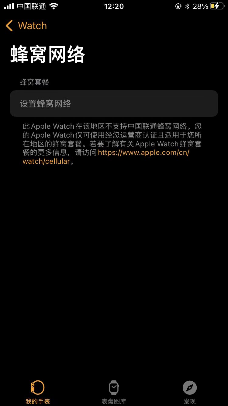 今天去开通了联通的主卡,59元的月租。归属地是湖南的,然后我在iPhone里面的watch APP 上面点击蜂窝网络是,显示该地区不支持开通esim?奇怪了,联通不是在全国开通了这个服务吗?我的是Apple Watch 3NIke联盟系列,手机是iPhone7,手机手表系统都为最新。