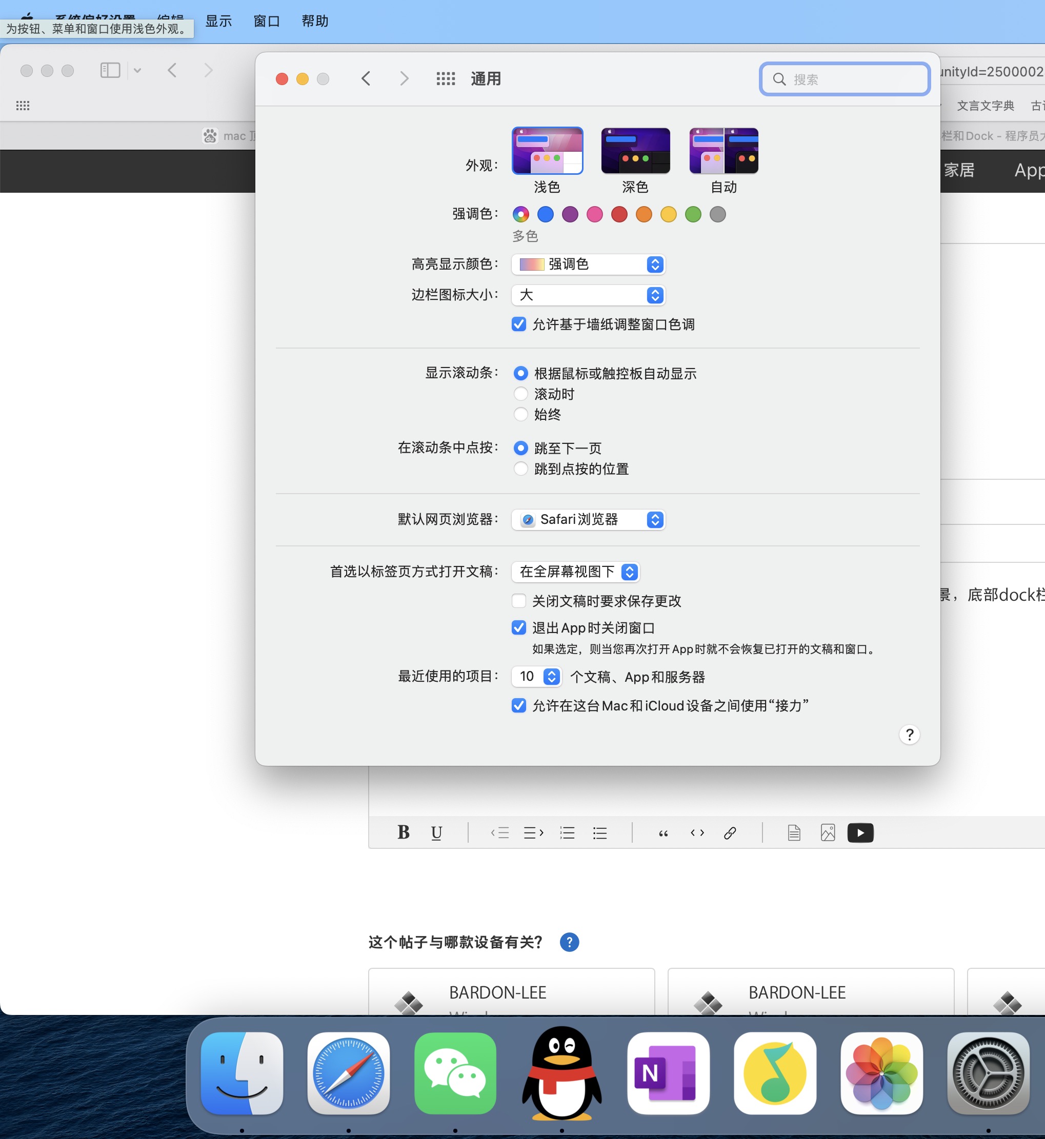 以下用户的用户个人资料: lgjuvr lgjuvr 作者 用户级别: 级别 1 21 积分 2022年8月14日 下午9:45 回应 Sariel 关了,但是没用,因为这个只是影响窗口的颜色。我是想把顶部菜单栏在黑暗模式在“深色”模式的时候也变黑 回复 链接