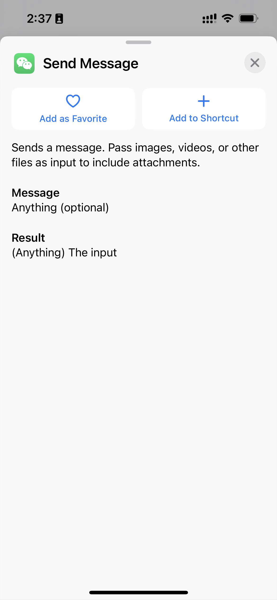 使用快捷指令选取一张图片,在发送给微信好友时,发送失败,显示如下图所示情况: