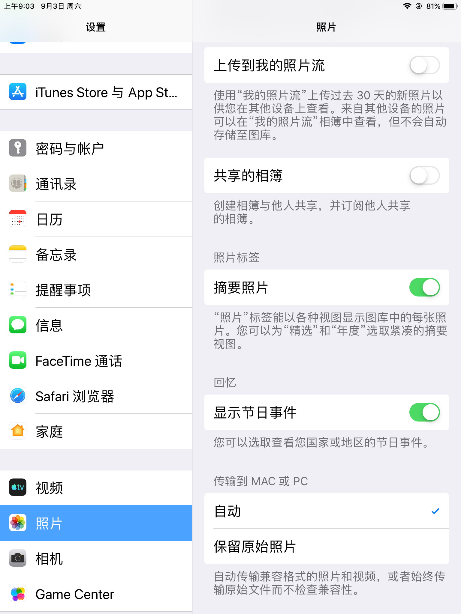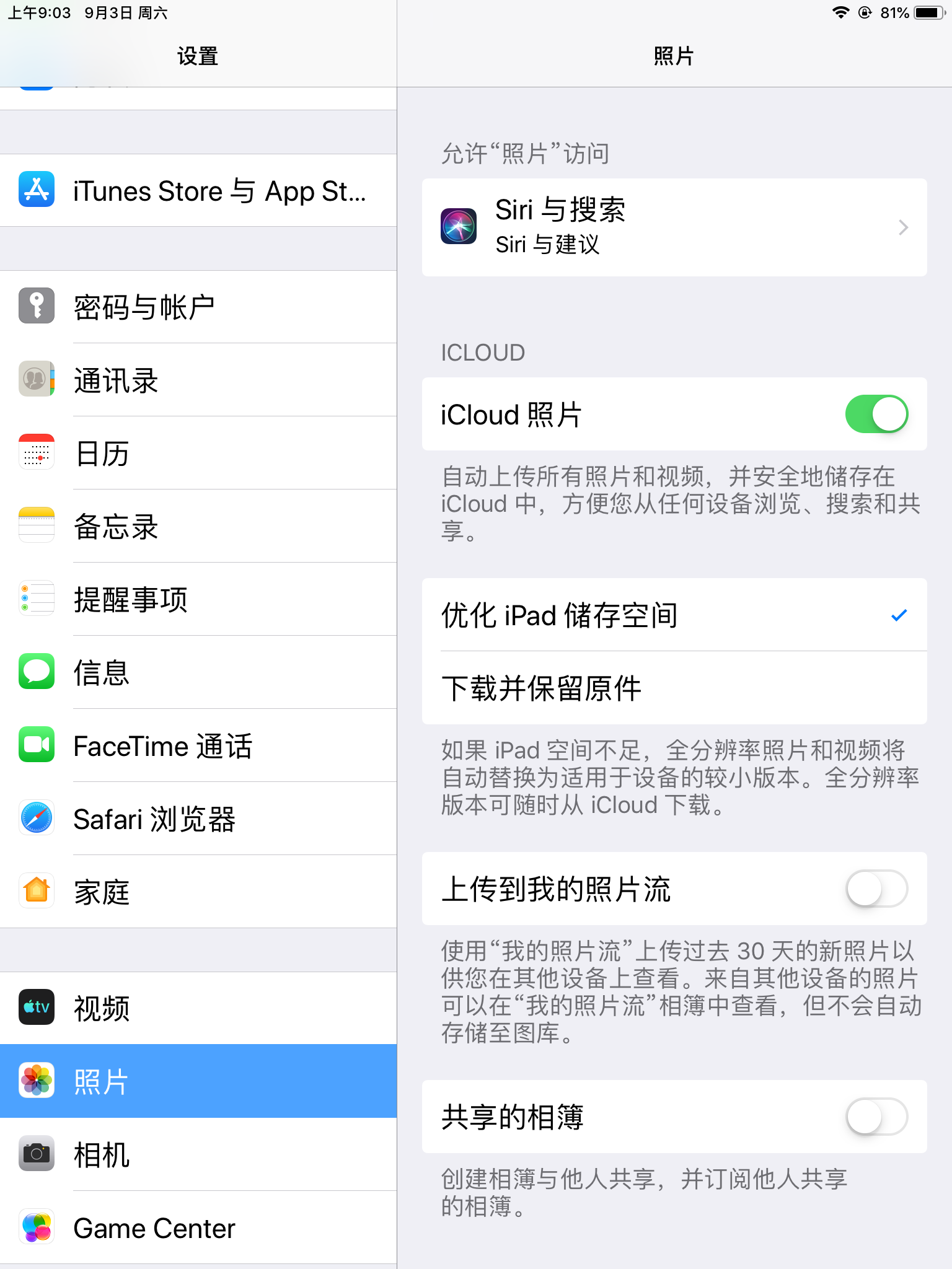 iPadmini2,系统ios12.5.6,我在相册中也隐藏了图片,但设置中“已隐藏”相簿的选项不见了。