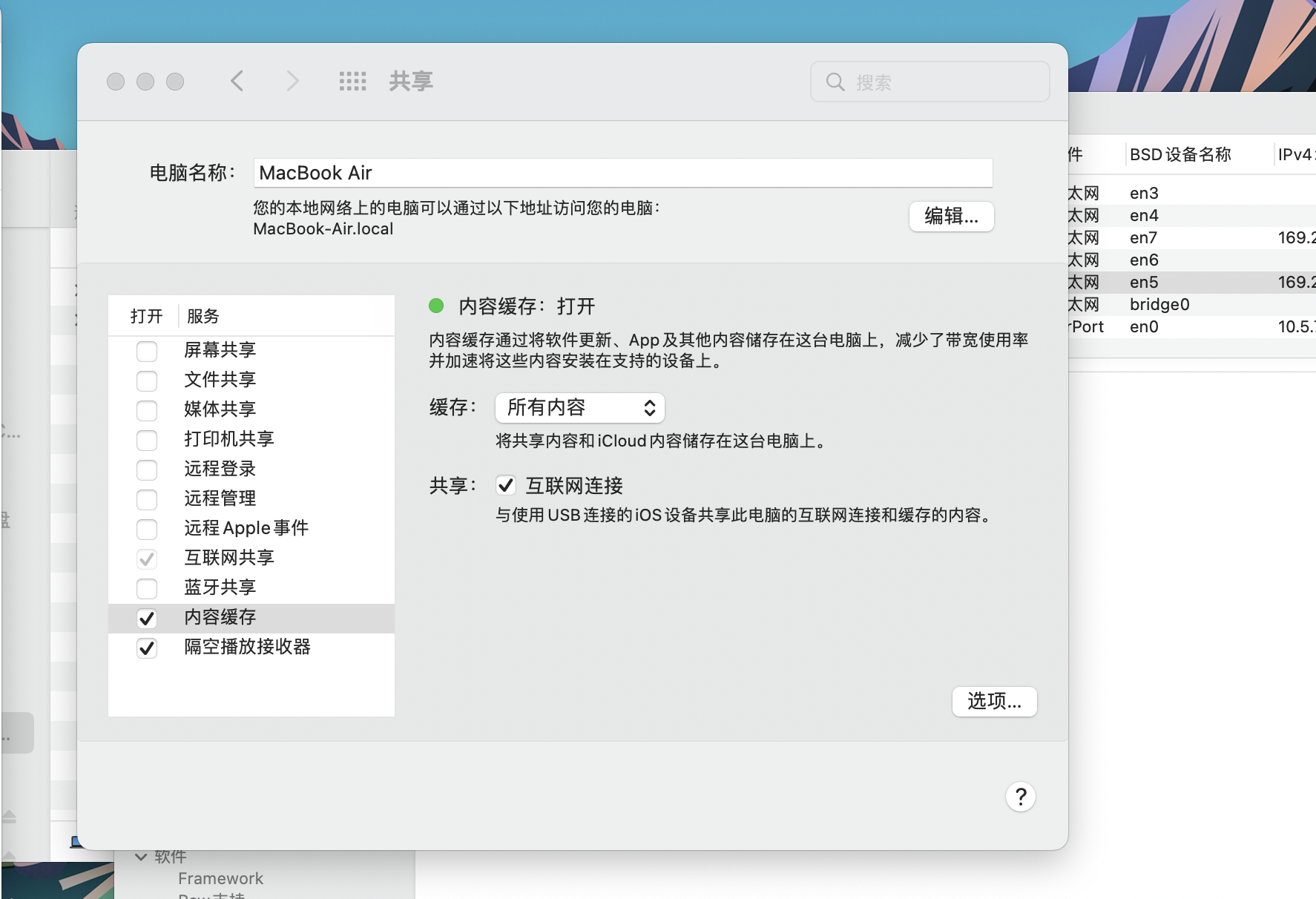 mac打开互联网共享时(内容缓存),发现iphone等设备包括ipad在内无法通过usb共享mac的网络。