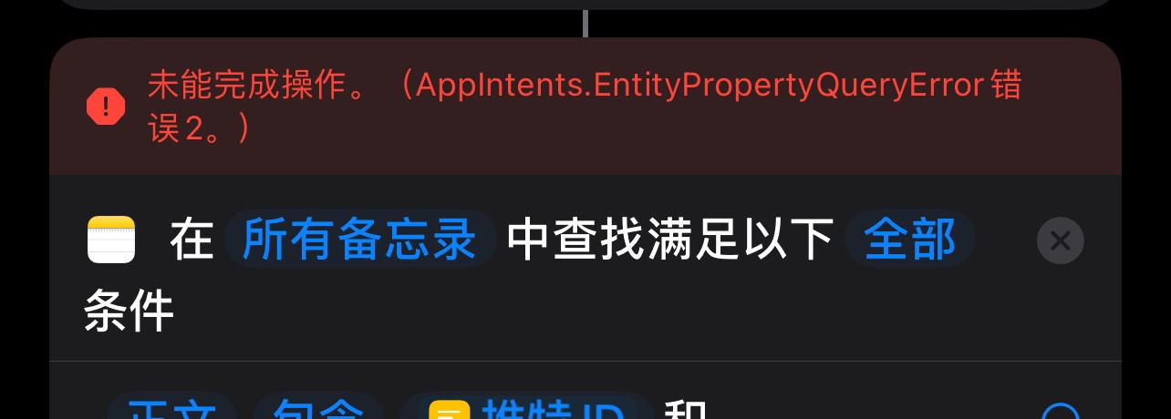 - 就是升级iOS16 后 iPhone上运行提示「未能完成操作。 (Appintents.EntityProperty QueryError