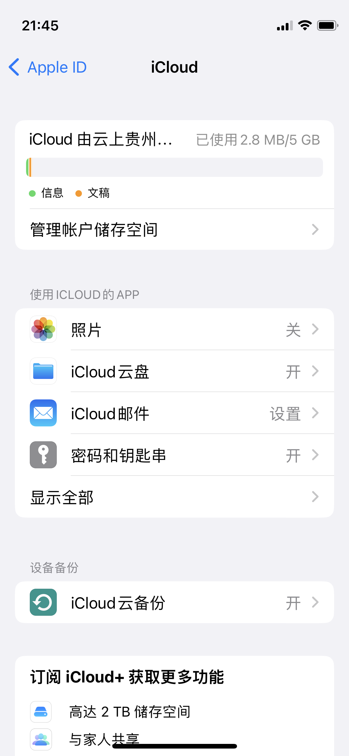 如果确认过备份大小的确小于 5 GB,但备份仍存在问题。再考虑是因为更换账号可能存在冲突或是新注册的账号尚且存在一些限制或问题,可以就此问题联系 Apple 支持(或致电 400-666-8800)。