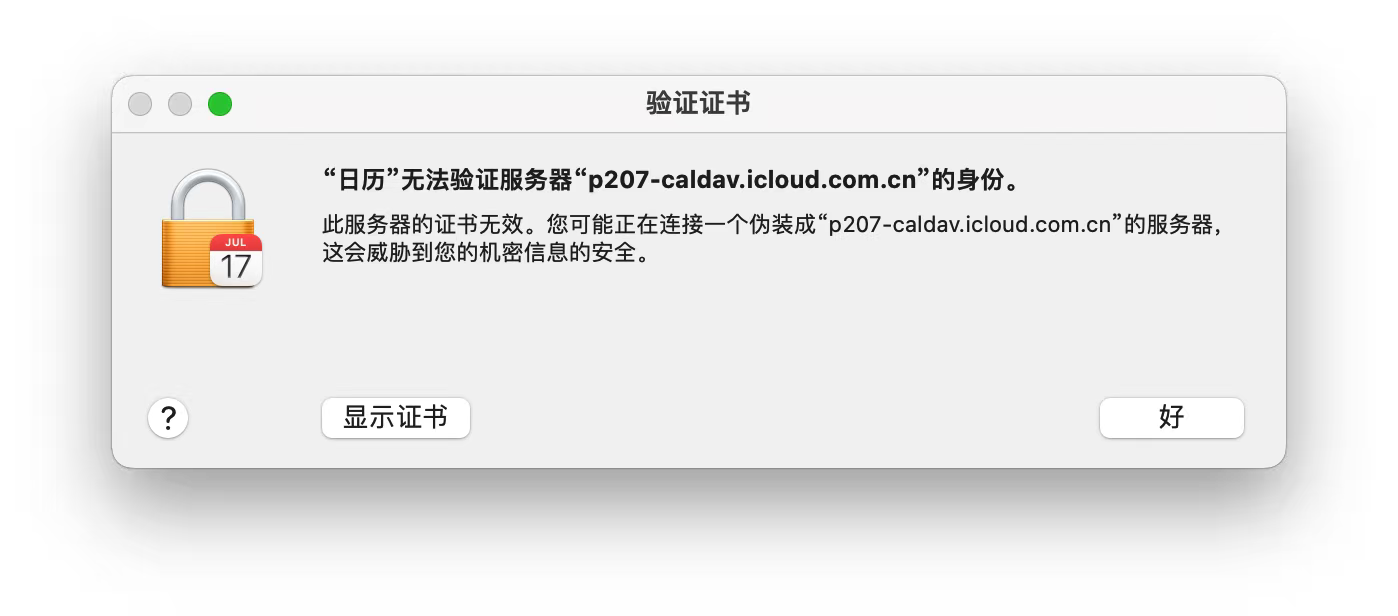 我了解到你在使用 Mac 时遇到了“日历”App 提示无法验证服务器身份的情况。由于暂时还没有其他社区用户来回复你的帖子,在此之前,建议你不妨先尝试以下操作步骤: