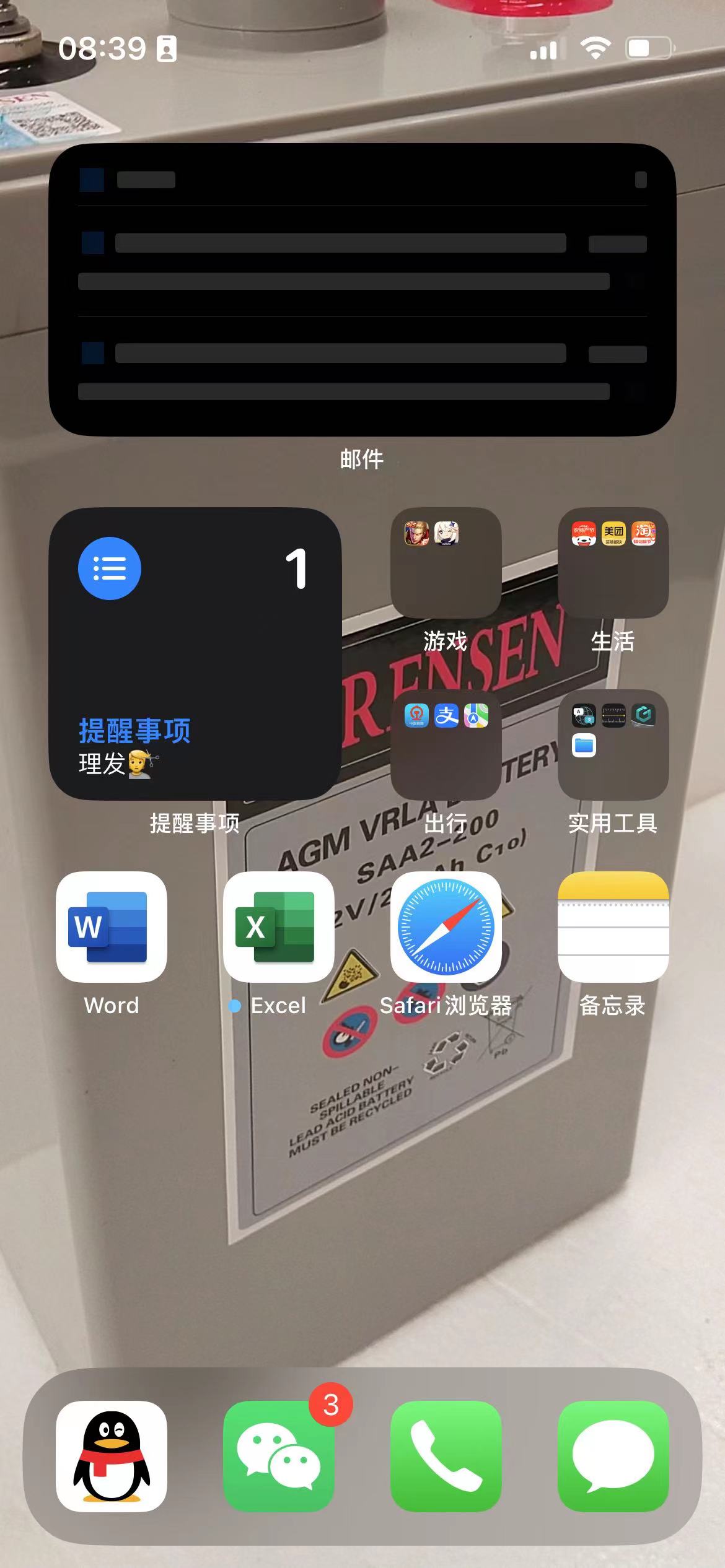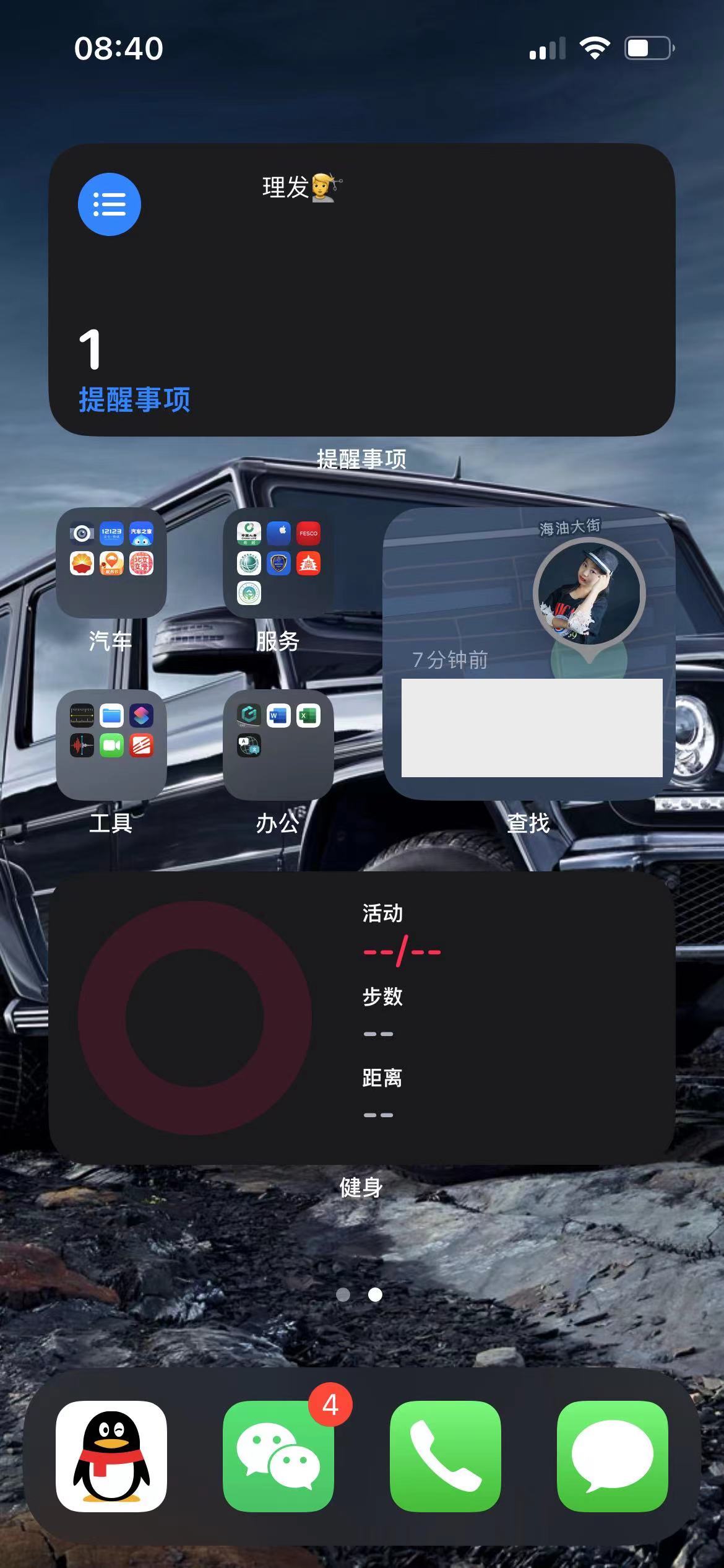 IOS16主屏幕工作模式添加了邮箱小组件,普通模式添加了健身小组件。当天正常好好的,第二天就变黑了,没数据了。