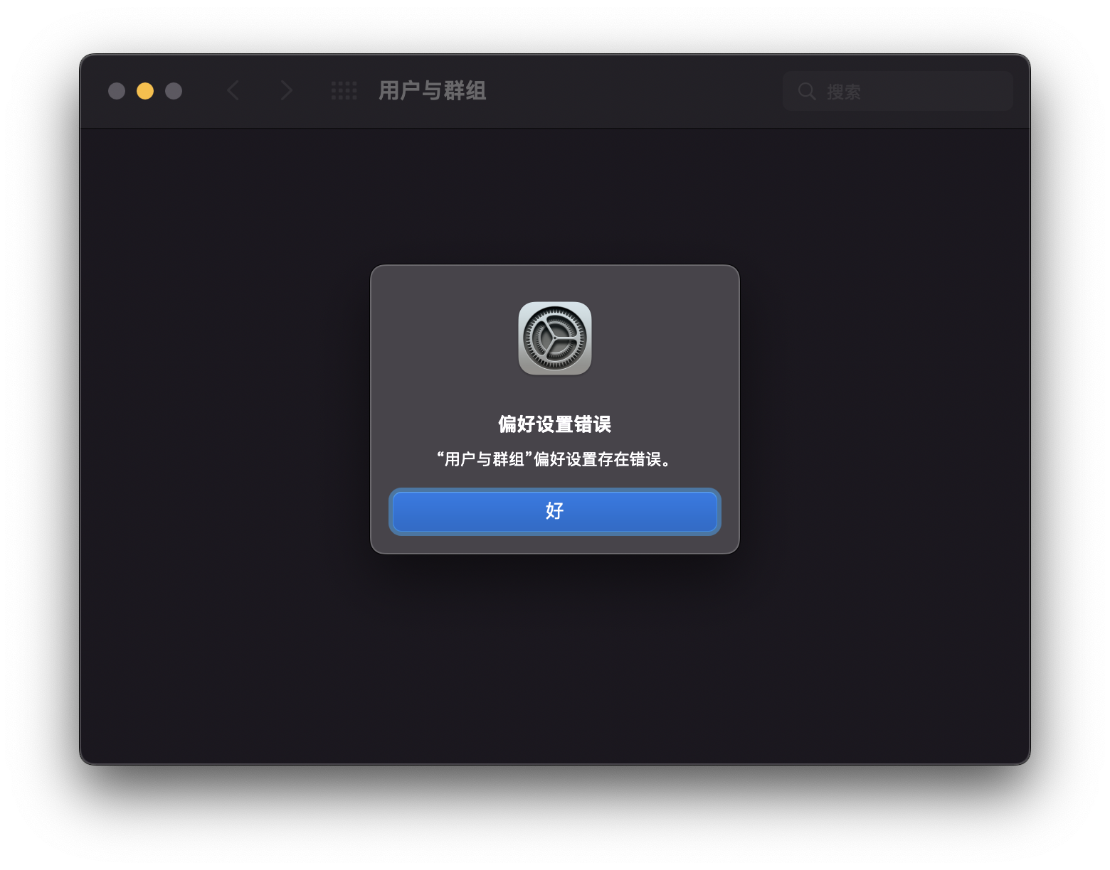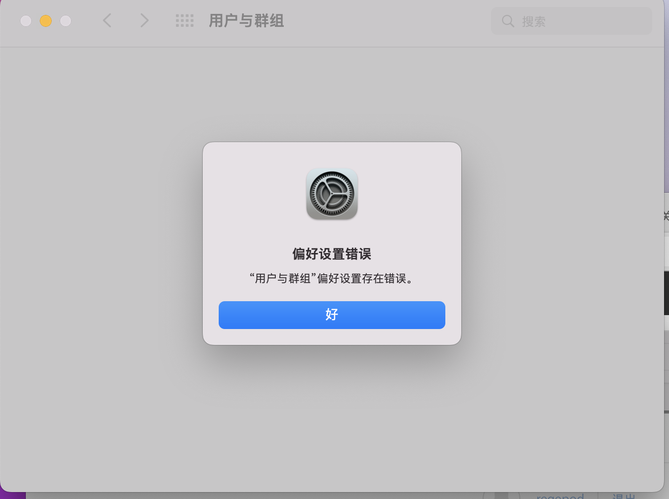 “用户与群组”偏好设置存在错误。
