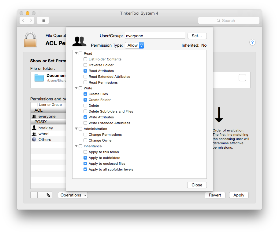 1: group:admin allow list,add_file,search,add_subdirectory,delete_child,readattr,writeattr,readextattr,writeextattr,readsecurity